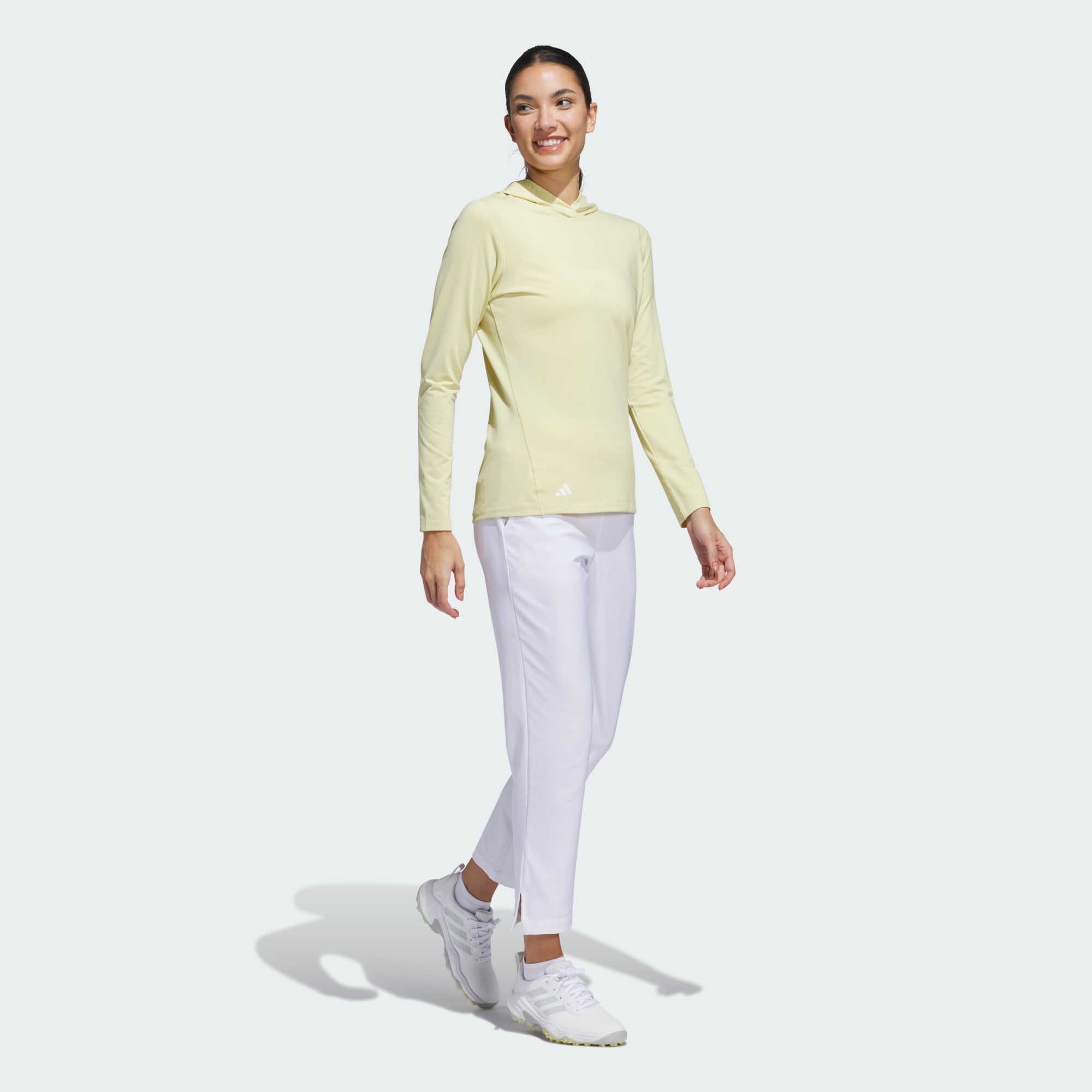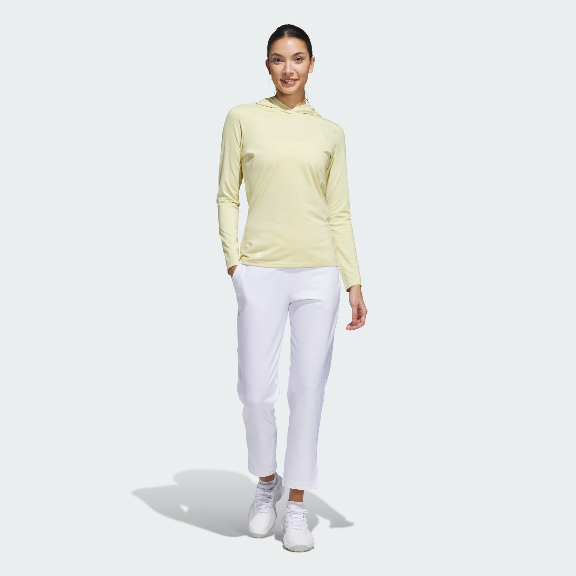 Take on those chilly mornings and breezy afternoons on the course in this adidas golf hoodie. It's made from a soft brushed fabric for a smooth and cozy feel and has plenty of stretch to let you swing comfortably. The hood comes in handy for those windy areas, so you can keep focused on your game, not the elements.
