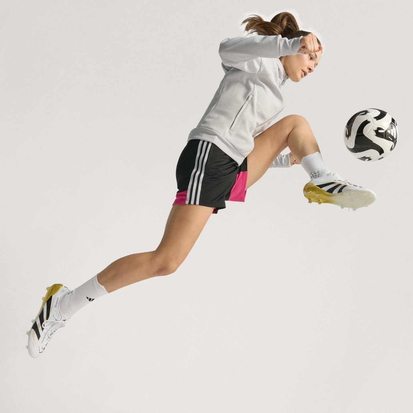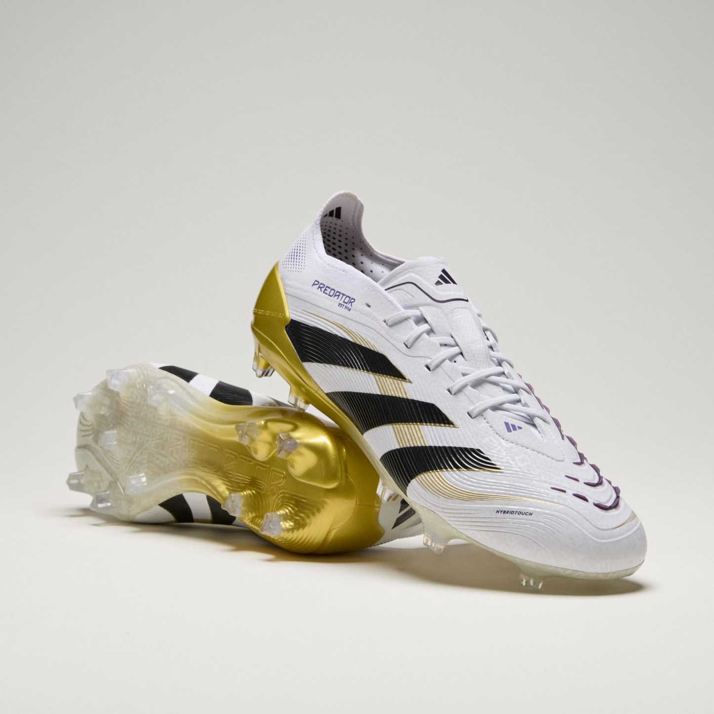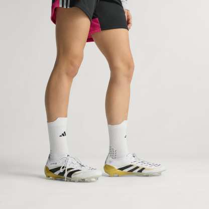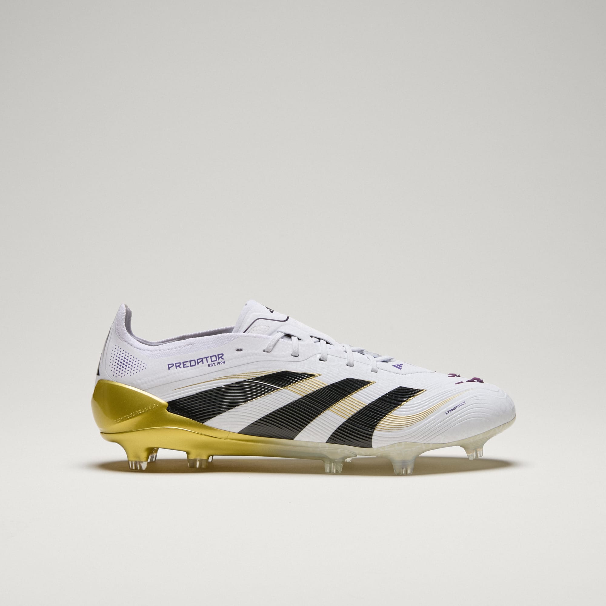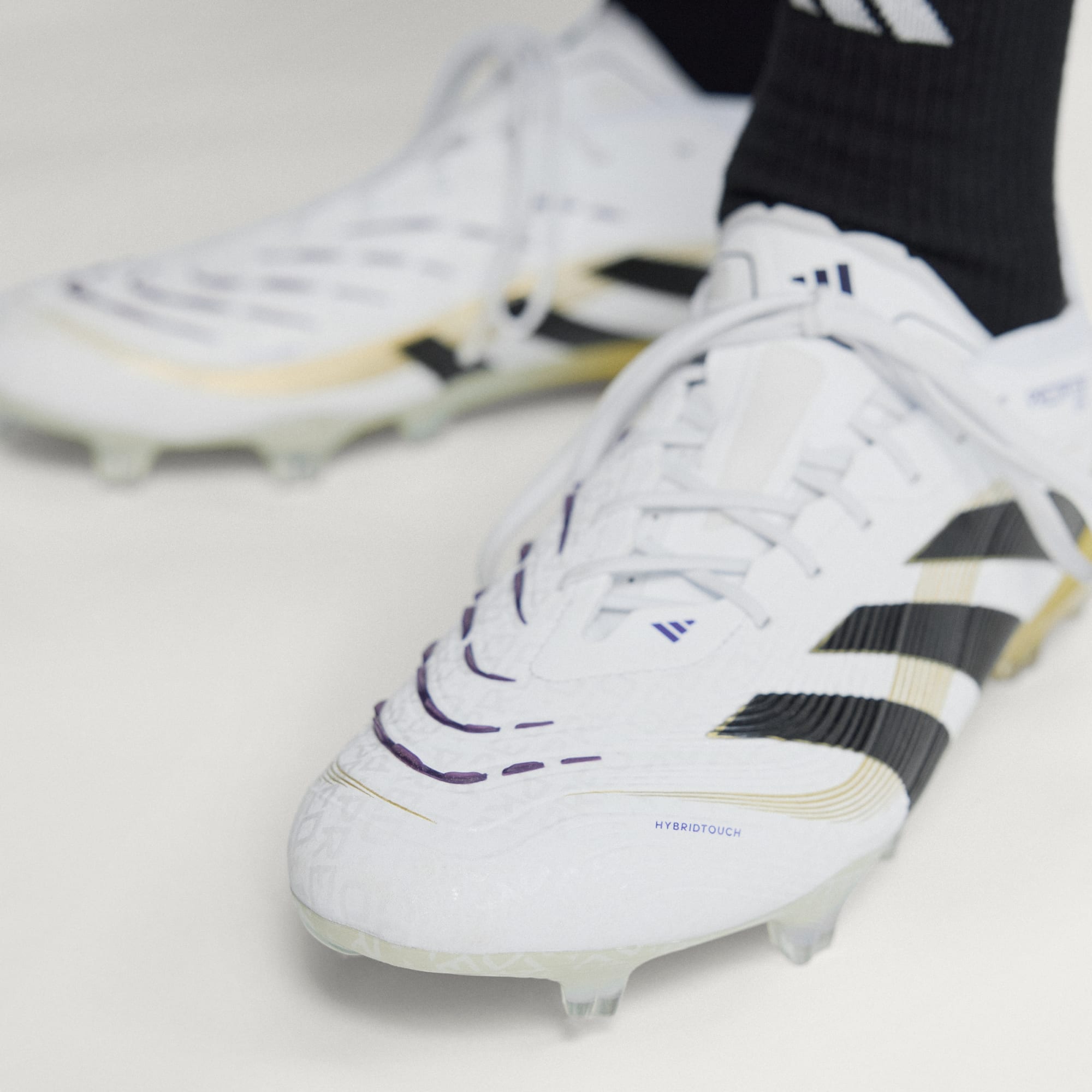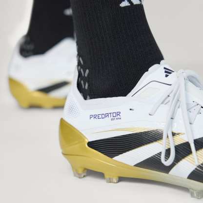 Discover the difference between aiming to score and knowing you will with adidas Predator cleats that are crafted for goals. These Elite cleats have a HybridTouch upper with strategically placed rubber Strikeskin fins that provide perfect contact with the soccer. The Controlframe 2.0 firm ground outsole and adidas PRIMEKNIT collar are designed to give you a stable stance when the goal's at your mercy.