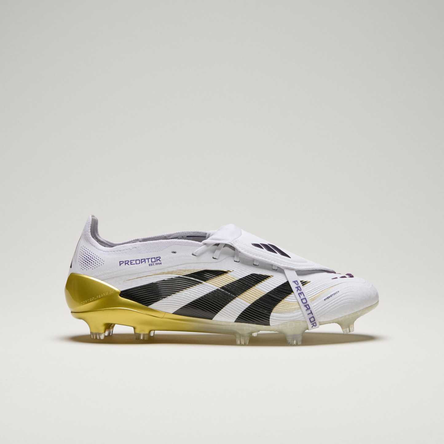 Discover the difference between aiming to score and knowing you will with adidas Predator cleats that are crafted for goals. These Elite cleats have a HybridTouch upper with a fold-over tongue and rubber Strikeskin fins that help provide perfect contact with the soccer. The Controlframe 2.0 firm ground outsole and adidas PRIMEKNIT collar are designed to give you a stable stance when the goal's at your mercy.