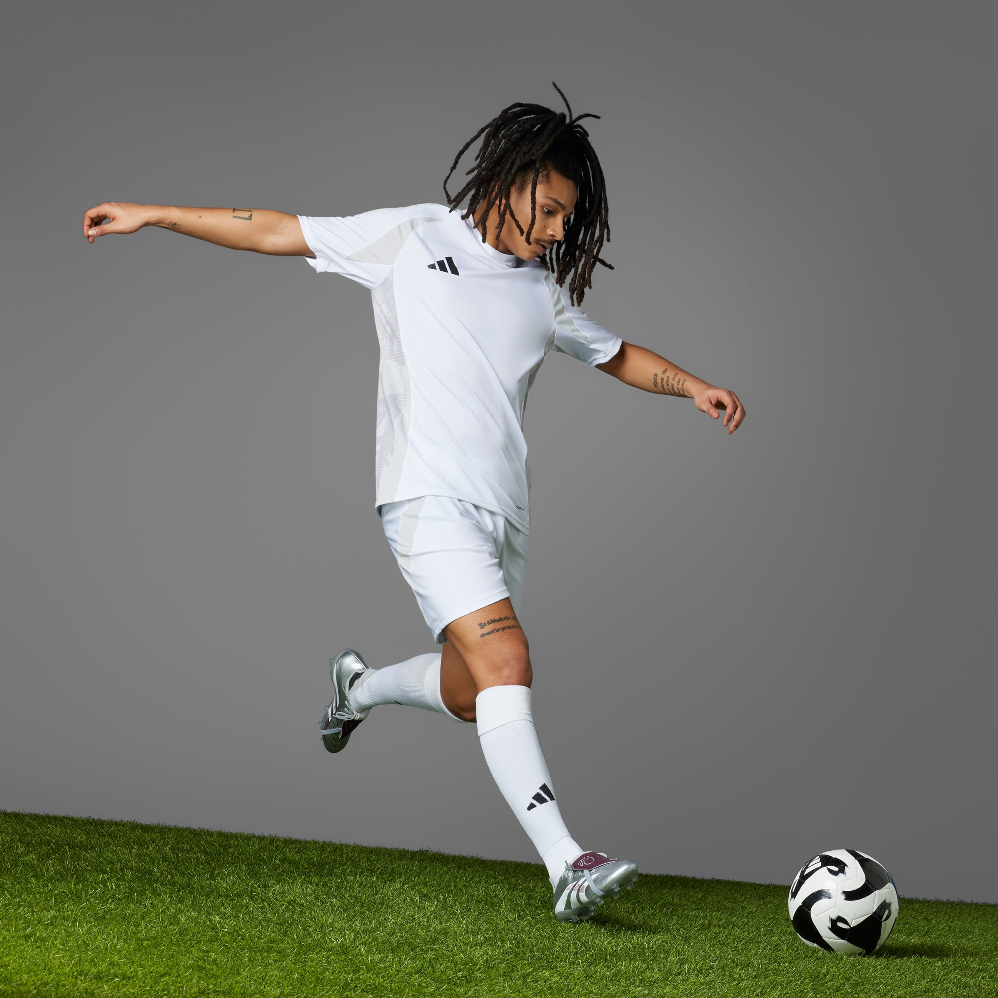Find the net like Jude Bellingham in standout adidas Predator League soccer cleats that bear his name. Starring on their Hybridfeel upper, an eye-catching fold-over tongue shows off the Real Madrid midfielder's logo. Elsewhere, a Controlplate outsole keeps you confident and comfortable as you wheel away and hit that classic JB celebration.This product features at least 20% recycled materials. By reusing materials that have already been created, we help to reduce waste and our reliance on finite resources and reduce the footprint of the products we make.