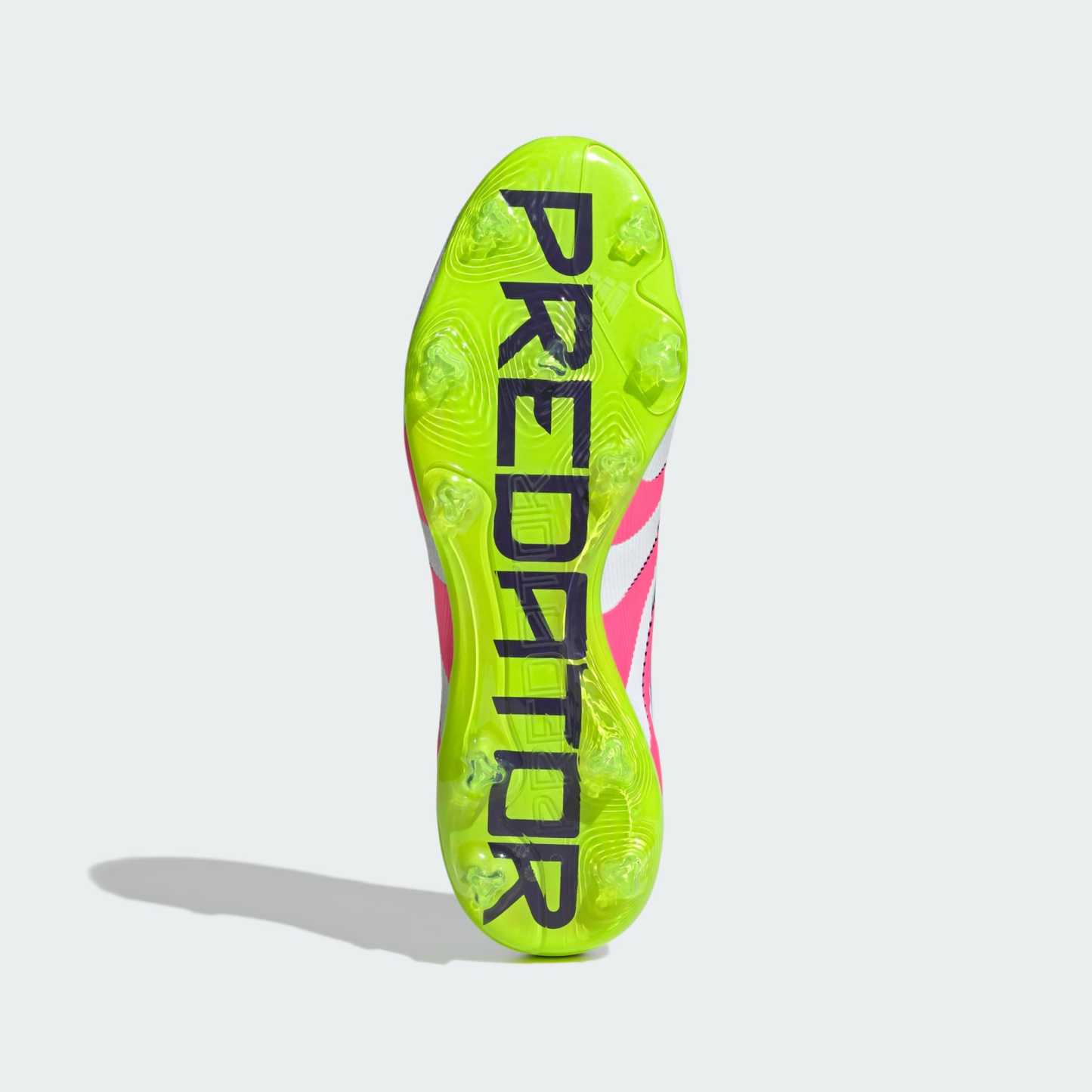 Go into every game knowing you'll score in adidas Predator Pro cleats crafted for goals. Grippy rubber Strikeskin fins on the soft, flexible HybridTouch upper assist with every strike of the soccer. Underneath, a full-length Controlplate outsole offers all the stability you need to set your sights on firm ground pitches.