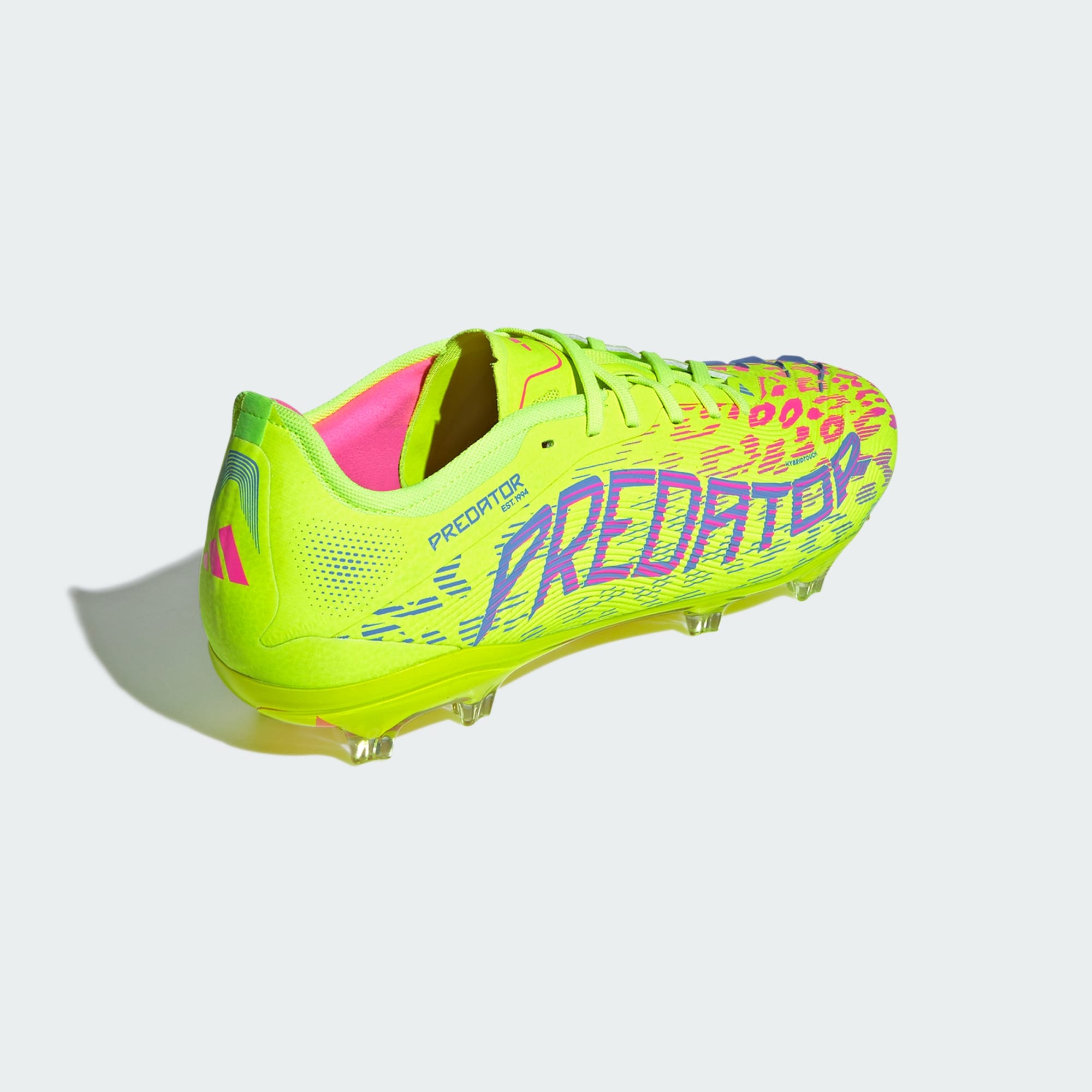 Go into every game knowing you'll score in adidas Predator Pro cleats crafted for goals. Grippy rubber Strikeskin fins on the soft, flexible HybridTouch upper assist with every strike of the soccer. Underneath, a full-length Controlplate outsole offers all the stability you need to set your sights on firm ground pitches.