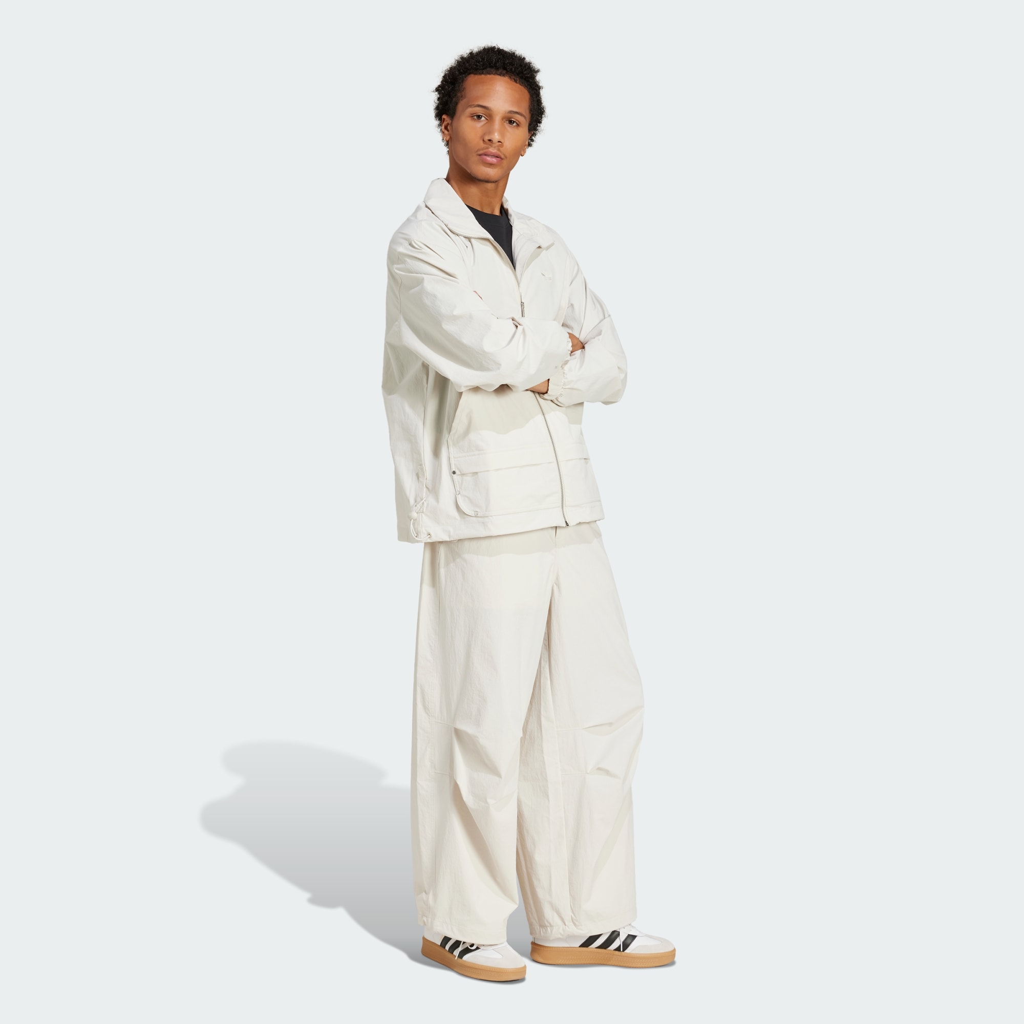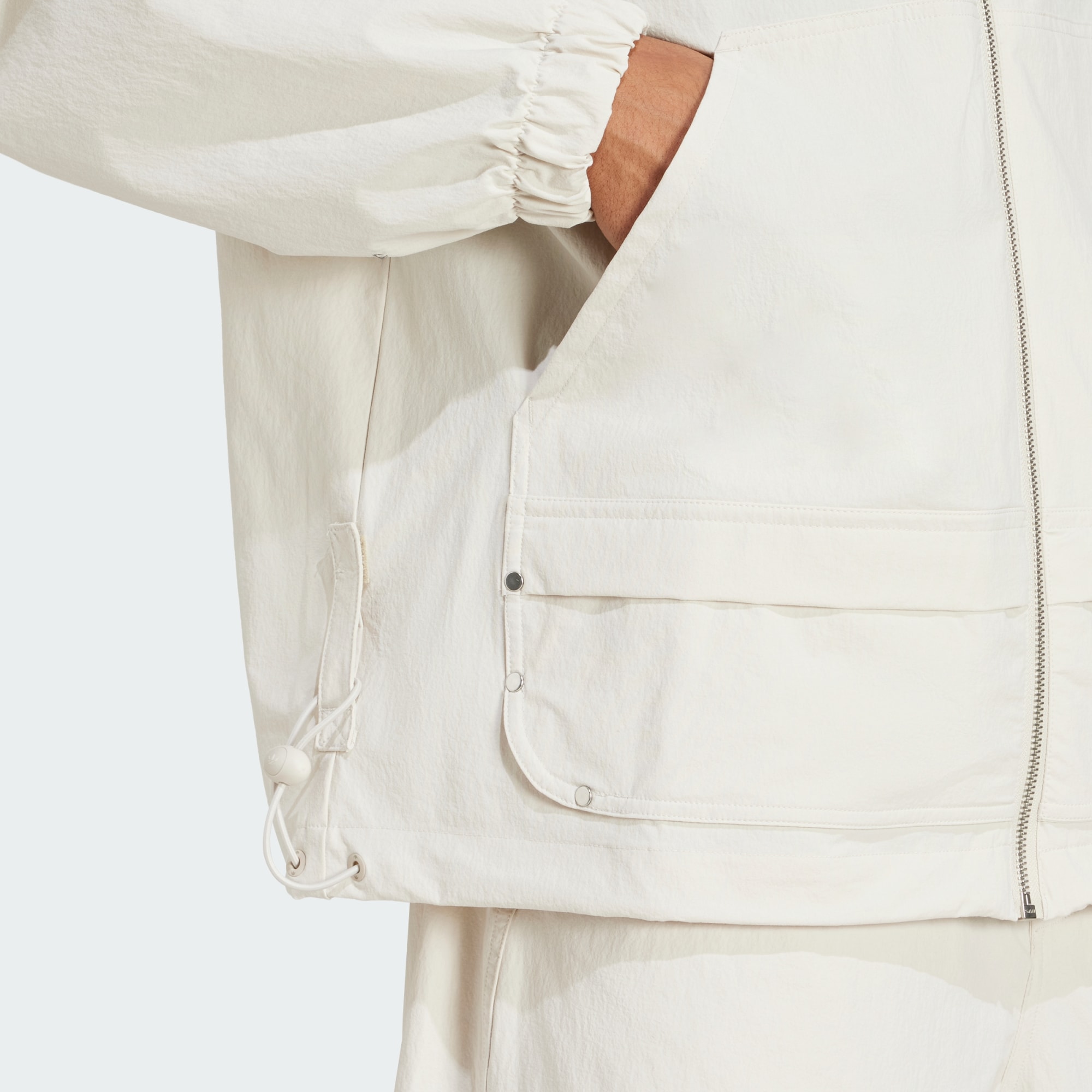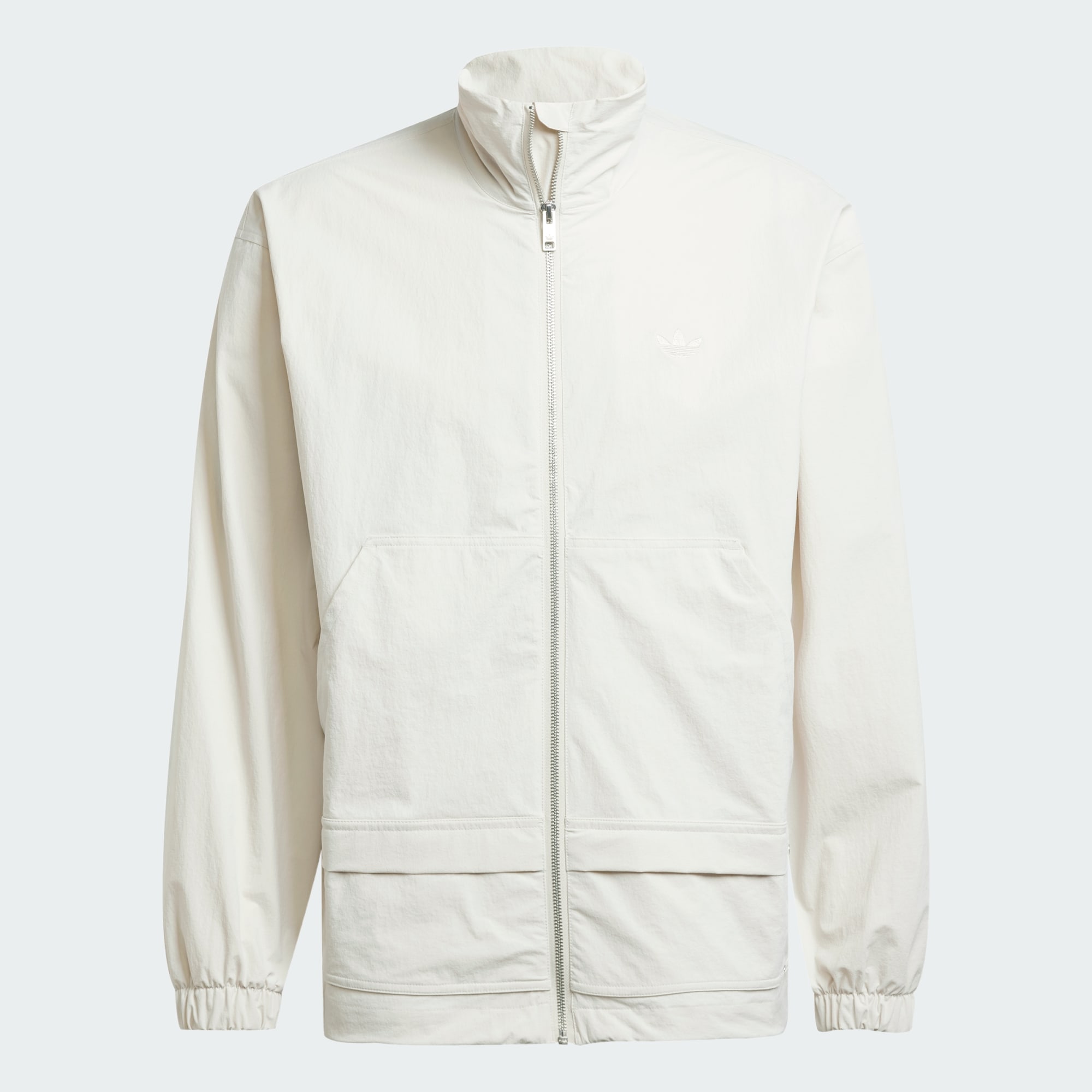 Life moves fast. Make sure your clothing can keep up. This adidas track top is made from smooth blended fabric with a touch of stretch. The loose shape creates a casual look that pairs well with everything from tailored trousers to your favorite jeans. Patch pockets on the front add a utilitarian element, nodding to the functional features that inspire the design.