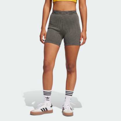 Made to move, these adidas booty shorts are inspired by '90s hip hop style. Ribbed fabric hugs your figure for a comfortable, snug fit. The shorts hit high on the thigh for an elongating effect. Whether you're dancing or just hanging out, these shorts keep you comfortable and stylish.