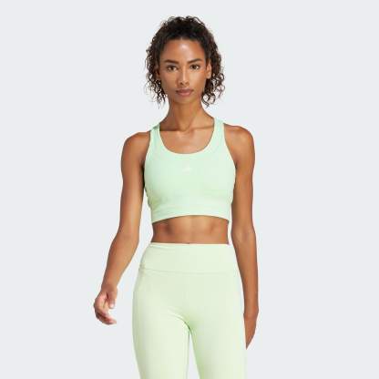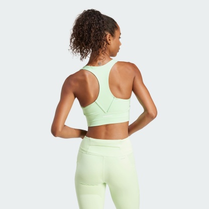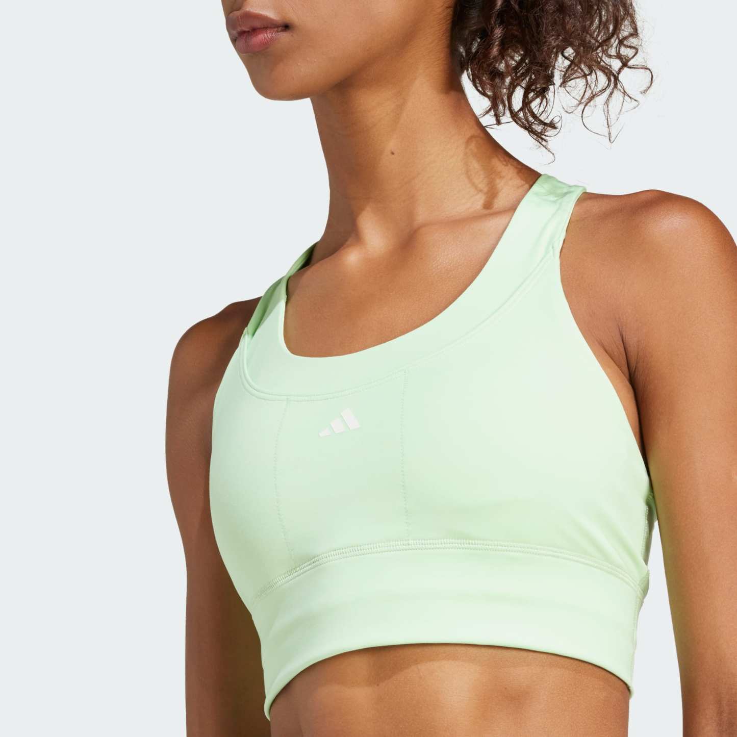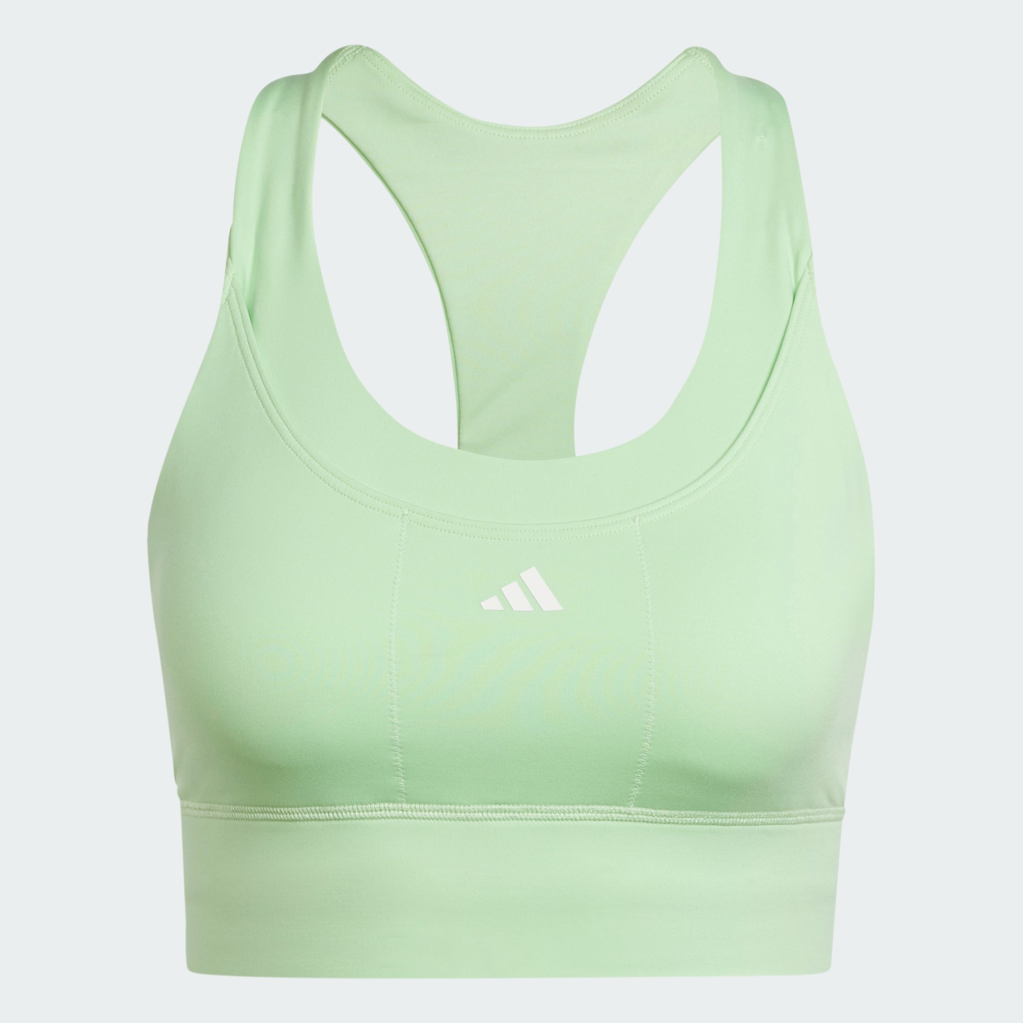 Push through tough runs without missing a beat in this medium-support bra from adidas. Moisture-wicking AEROREADY fabric keeps you cool and focused on your pace, while stretchy fabric contours to your shape for a chafe-free fit. Multiple pockets securely stash your essentials so you can run distraction-free. Reflective details help keep you visible after dark.