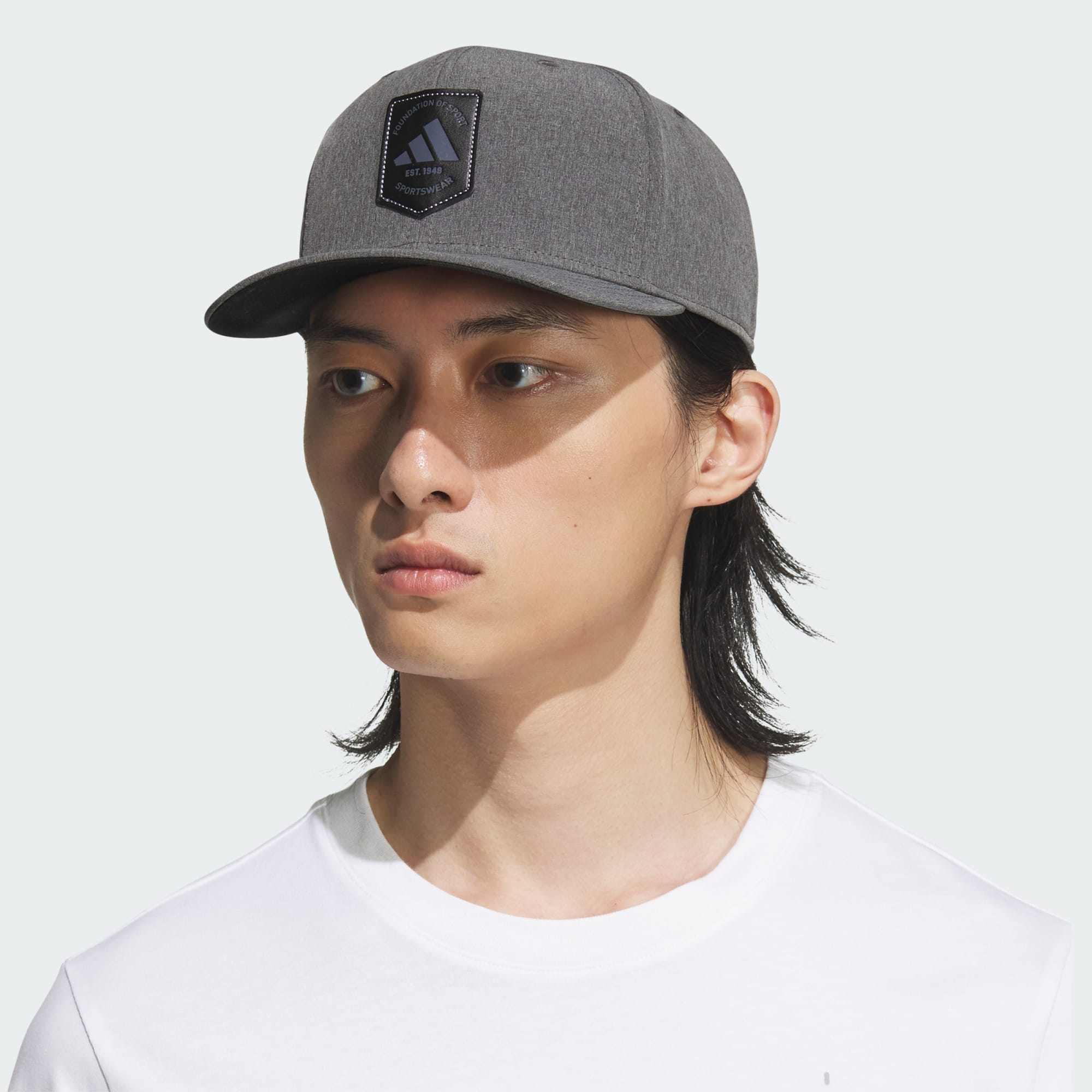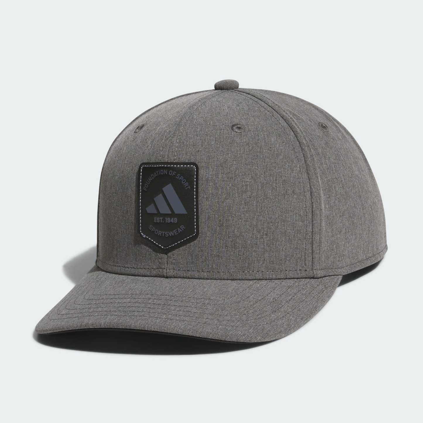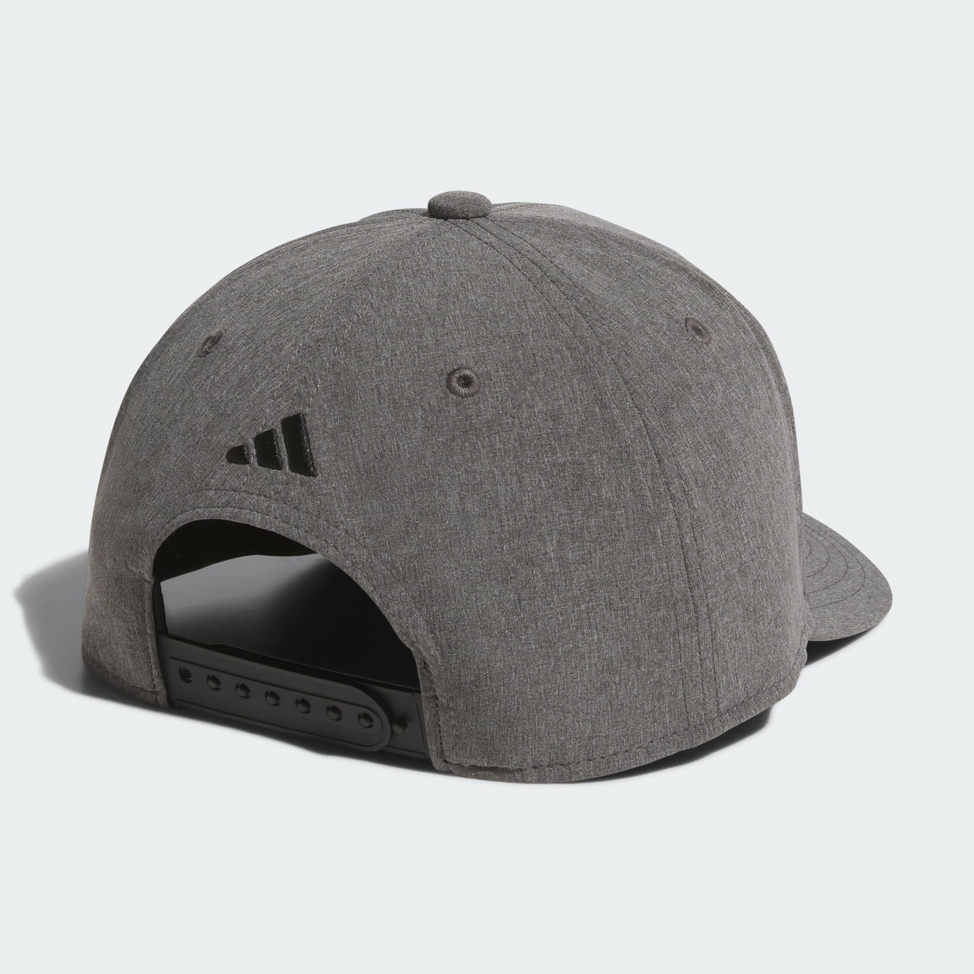 Classic shape meets endless versatility. This men's adidas snapback hat puts the finishing touch on your look with its structured six-panel crown and flat brim. It's made from heathered fabric with a polyurethane leather logo. Snaps in back let you adjust to find the perfect fit.