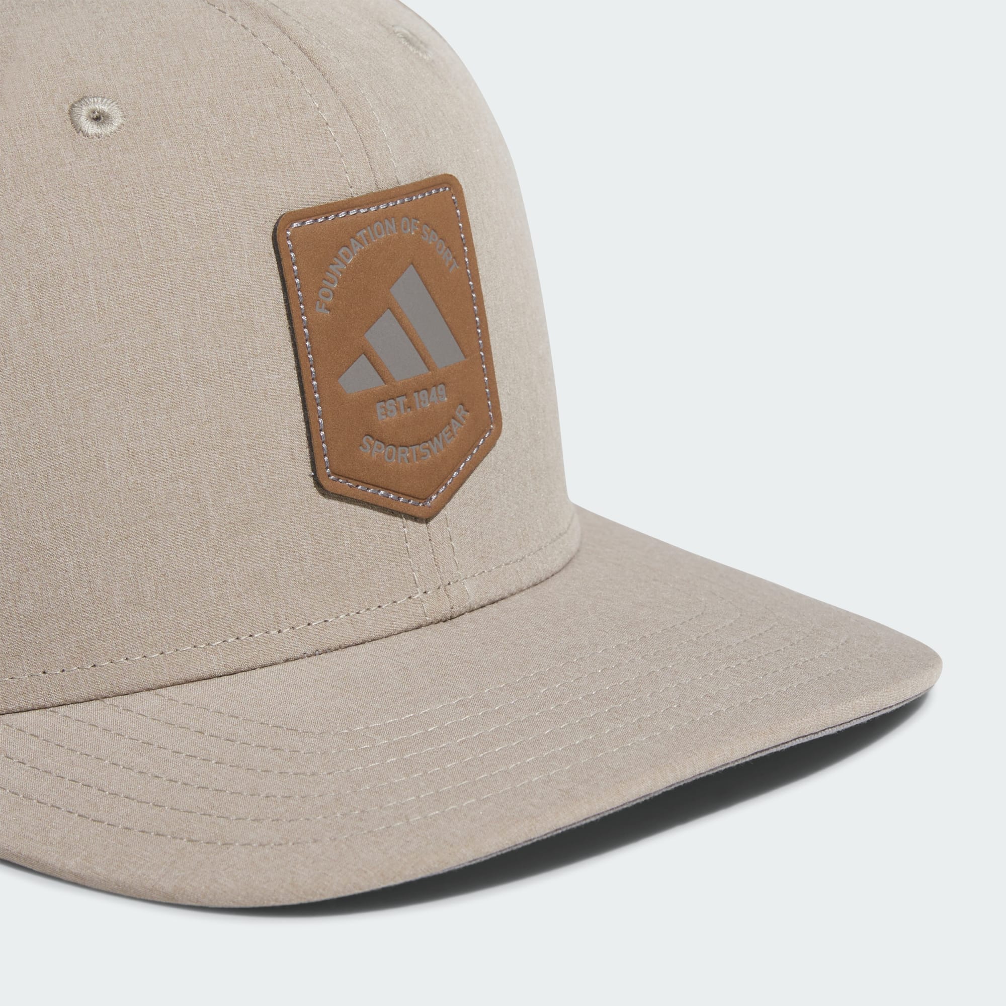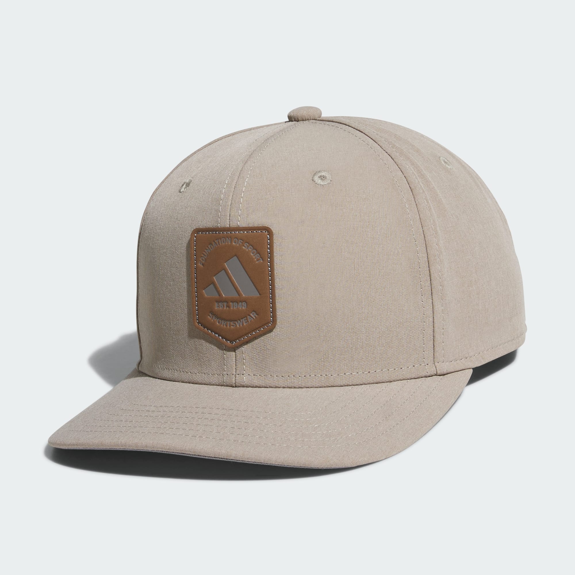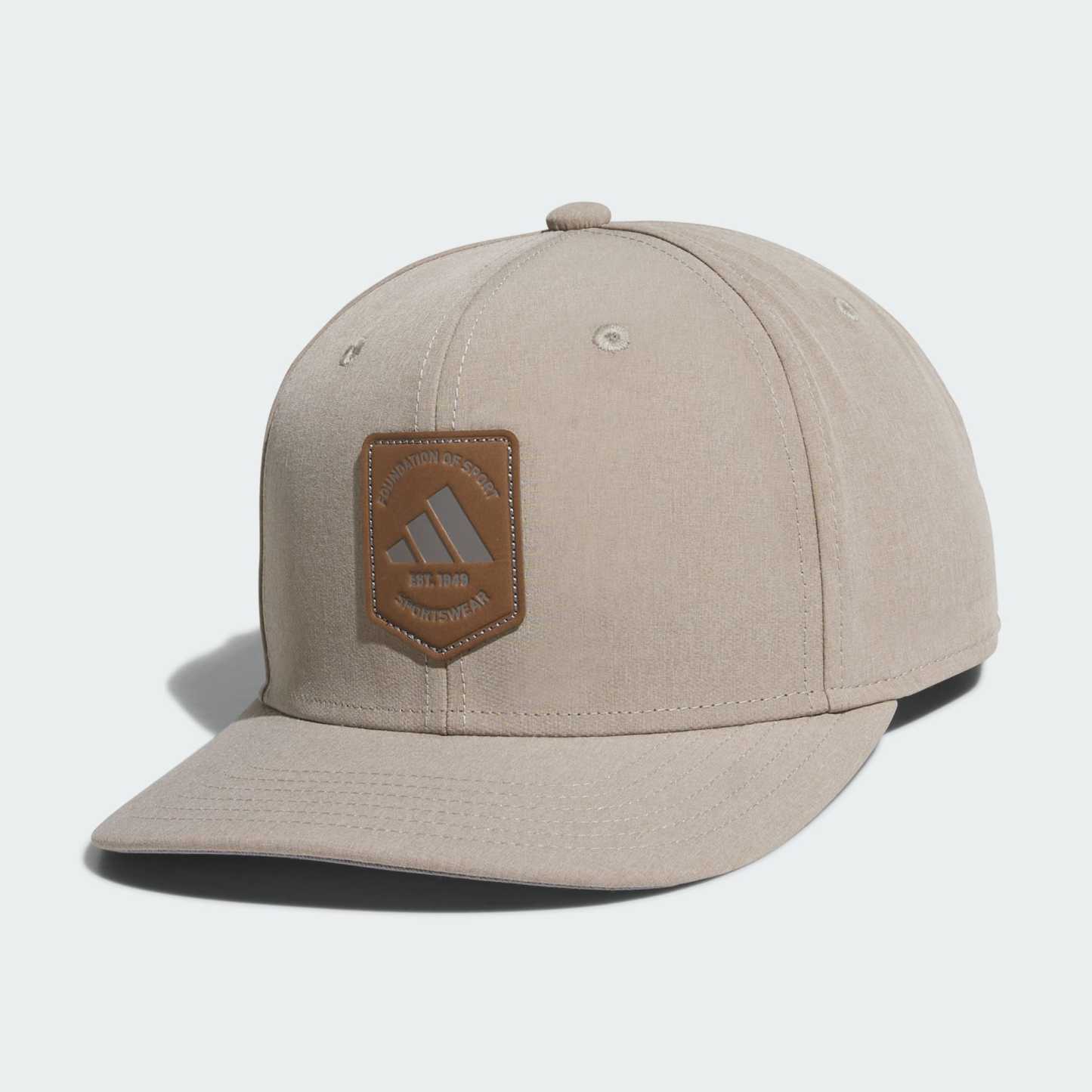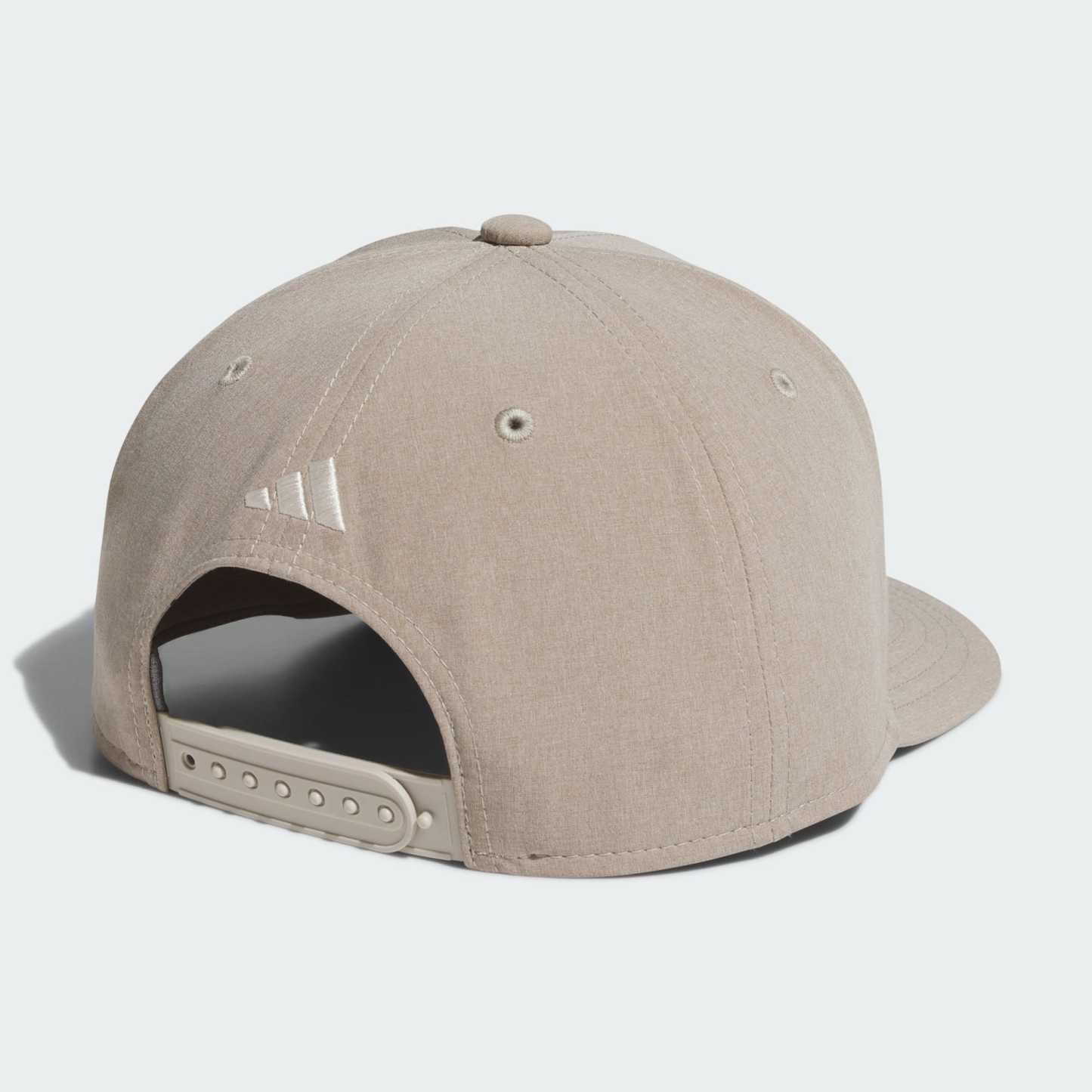 Classic shape meets endless versatility. This men's adidas snapback hat puts the finishing touch on your look with its structured six-panel crown and flat brim. It's made from heathered fabric with a polyurethane leather logo. Snaps in back let you adjust to find the perfect fit.