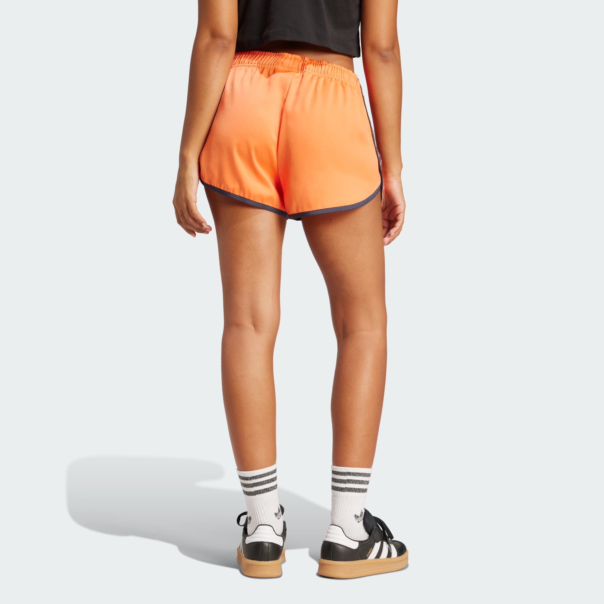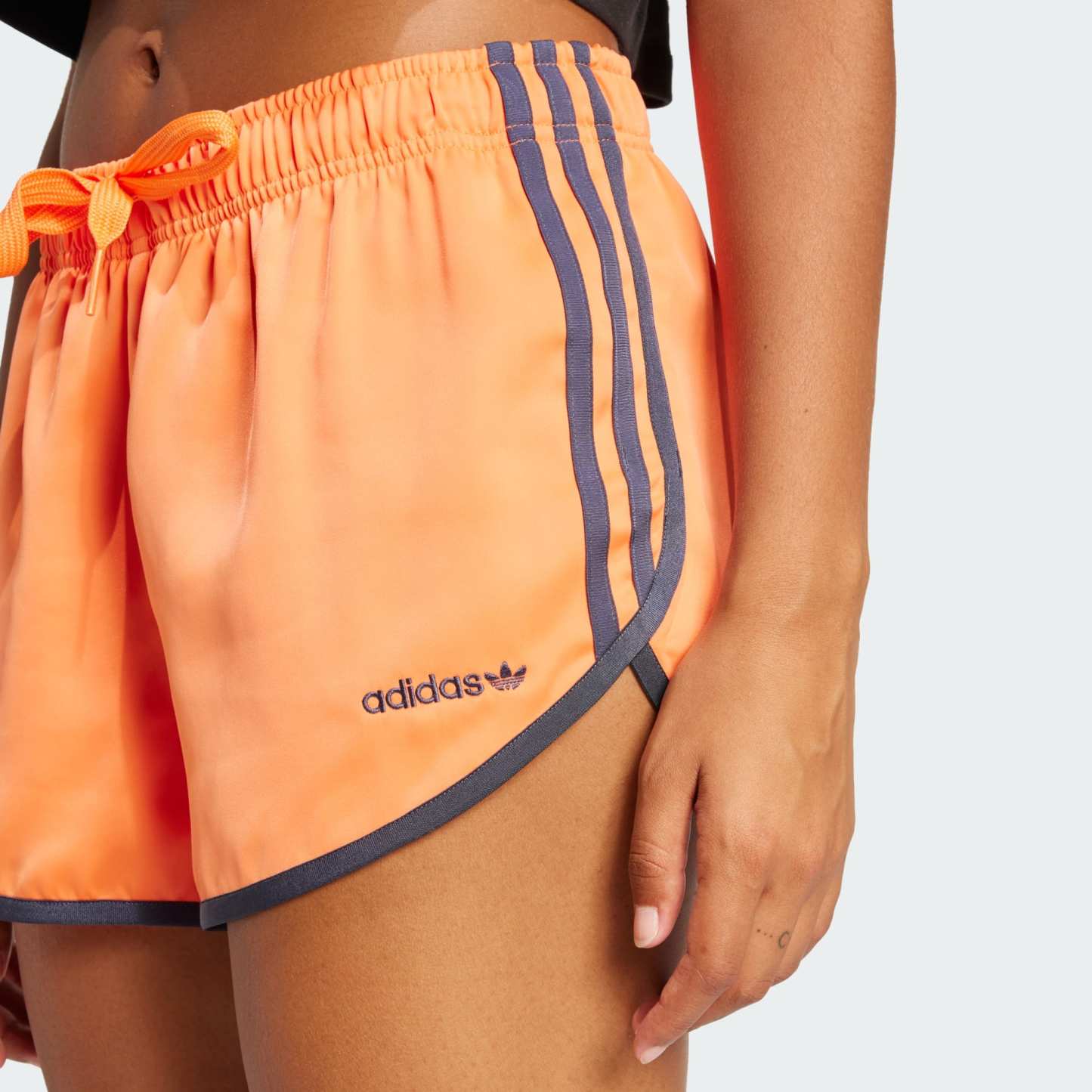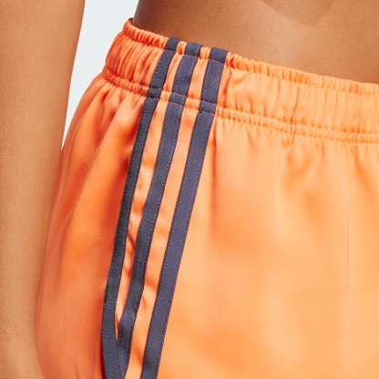 Inspired by retro track and field style and '80s disco vibes, these loose-fit satin shorts from adidas move with a sense of elegance and ease. Contrast-color 3-Stripes and piping add to the heritage sport look. A linear adidas logo signs off on the classic silhouette.