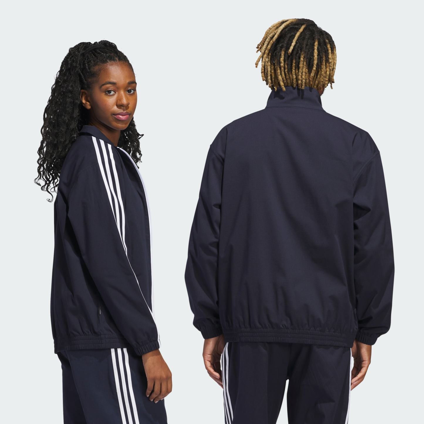 An essential jacket for skateboarding with track-inspired details, made in part with a blend of recycled and renewable materials.