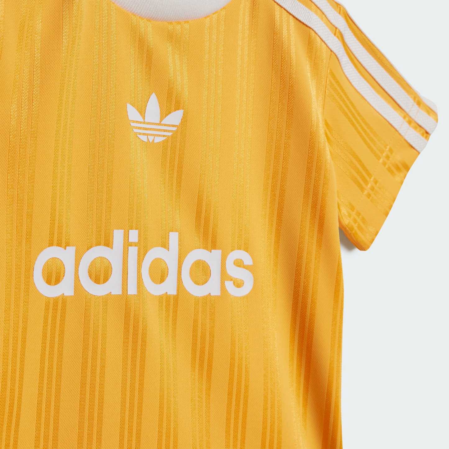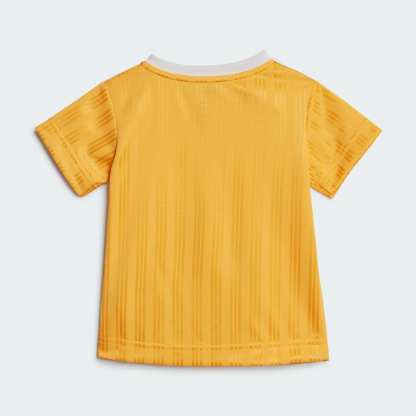 Your little one will shine in this toddlers' soccer shorts and tee set. The contrast-color Trefoil, 3-Stripes and linear adidas logo give both pieces sporty style. The shorts come with an elastic waist to make dressing easy. This product is made with 100% recycled materials. By reusing materials that have already been created, we help to reduce waste and our reliance on finite resources and reduce the footprint of the products we make.