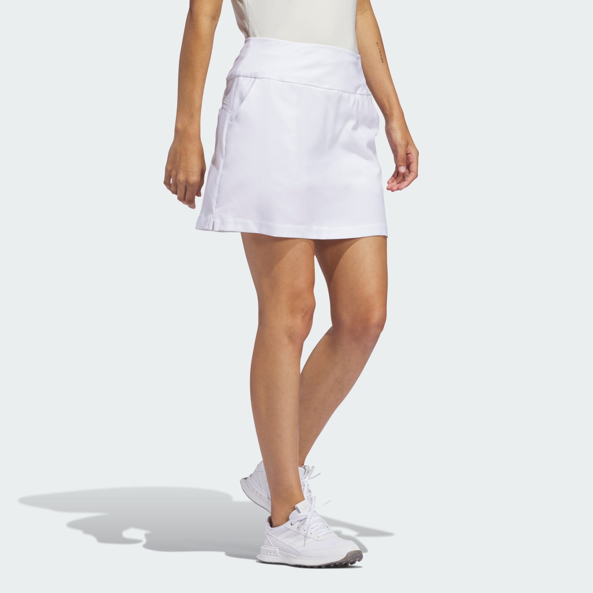 Whether teeing off or putting for par, this golf skort priorities comfort and performance, so you can look and play your best. adidas AEROREADY manage sweat to keep you feeling fresh and dry through the back nine. Attached inner shorts let you bend and twist with confidence, and a power mesh waist band moves with you for all-day comfort.This product is made with at least 70% recycled materials. By reusing materials that have already been created, we help to reduce waste and our reliance on finite resources and reduce the footprint of the products we make.