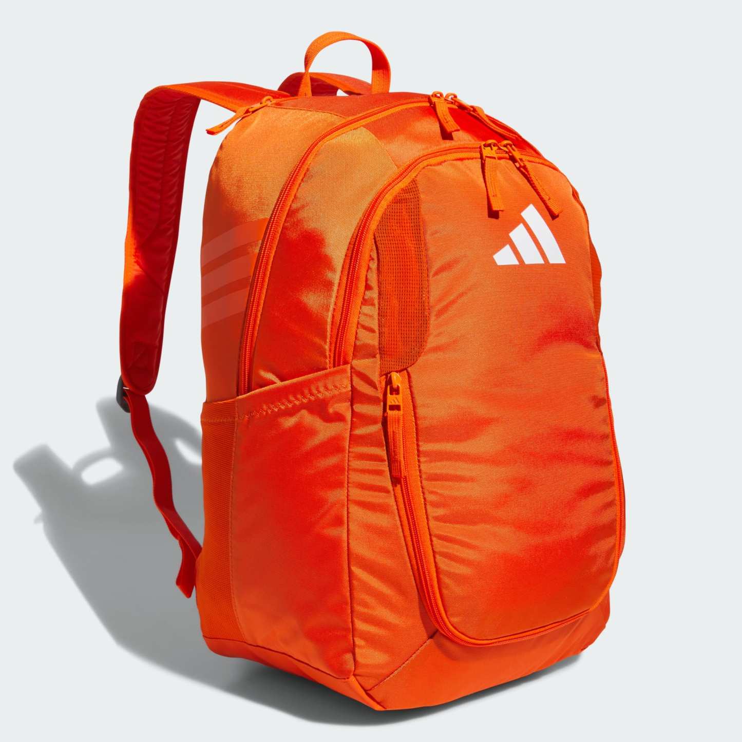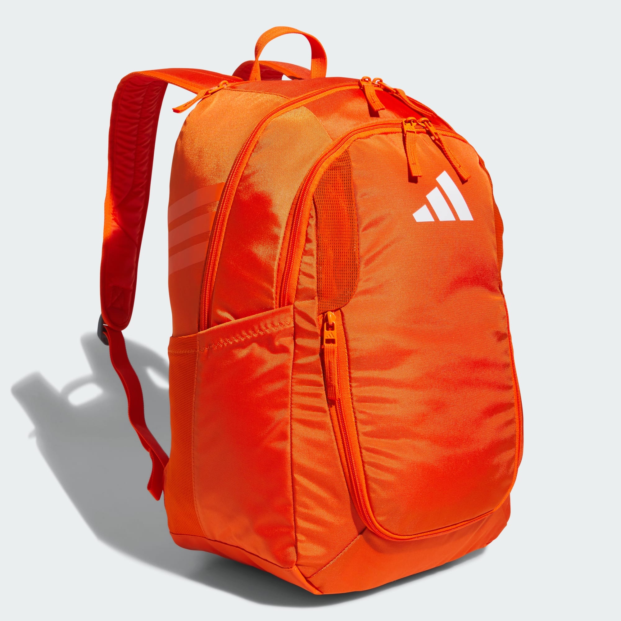 Made from lightweight, durable polyester, this versatile adidas backpack keeps stuff organized and dry thanks to a water-resistant base. Multiple zip pockets keep your gear separated, including one that can hold a size 5 soccer ball and two mesh side pockets that can each hold a 32 oz water bottle. There's also a vented pocket to store dirty gear and a clip to attach essentials. Score!