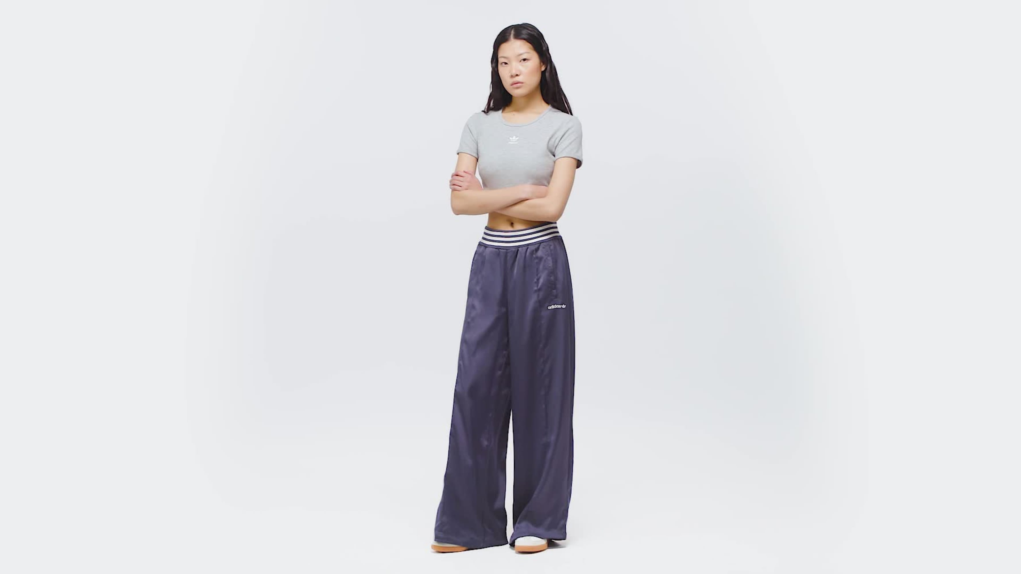 Inspired by '80s disco style and retro track and field, these adidas track pants move seamlessly from day to night. Their luxurious satin build and wide-leg cut are all about elegance and ease. 3-Stripes rib detailing adds a sporty touch to the classic design. Pair these pants with your favorite sneakers or dress them up with heels.