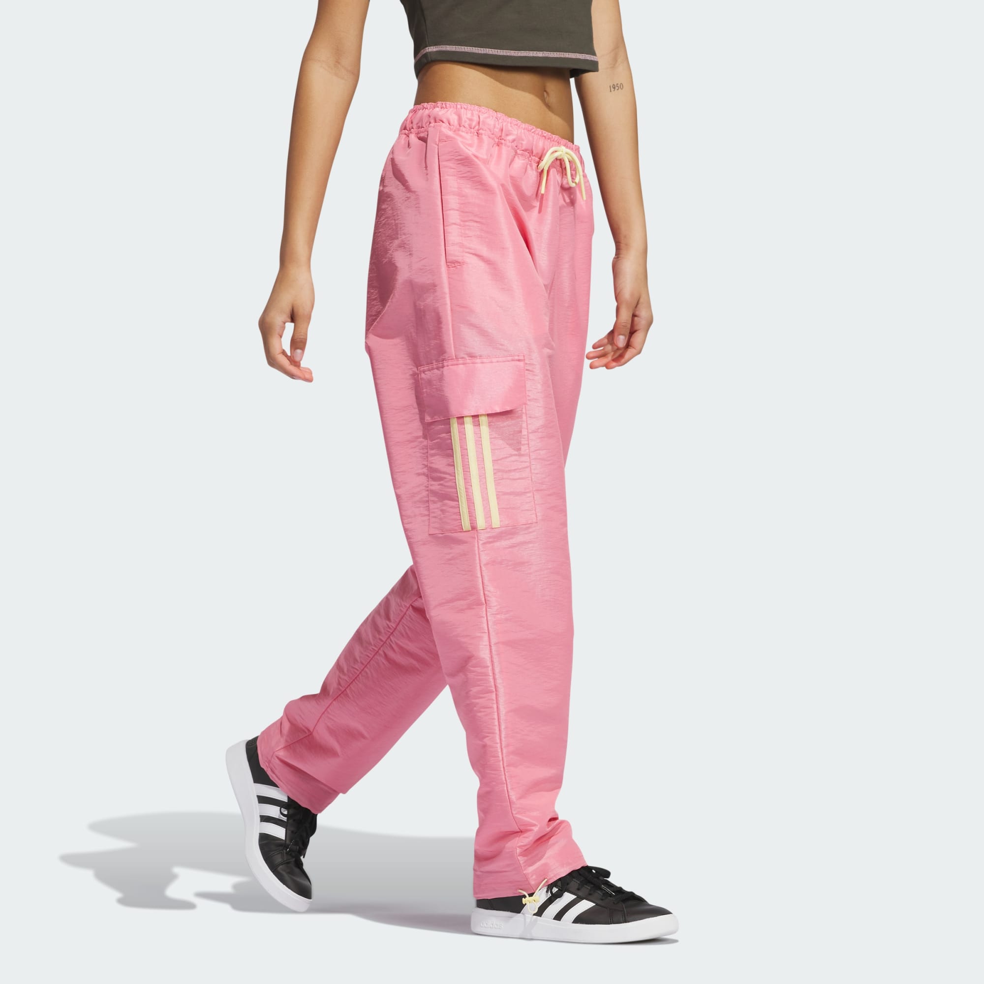 With iridescent trims that shimmer as you move, these adidas pants complement your casual style. Cargo pockets keep essentials within easy reach whether you're out at brunch or chilling at the beach. Simple yet striking, the loose fit keeps things breezy and makes it easy to layer these pants over your swimsuit. This product is made with at least 70% recycled materials. By reusing materials that have already been created, we help to reduce waste and our reliance on finite resources and reduce the footprint of the products we make.