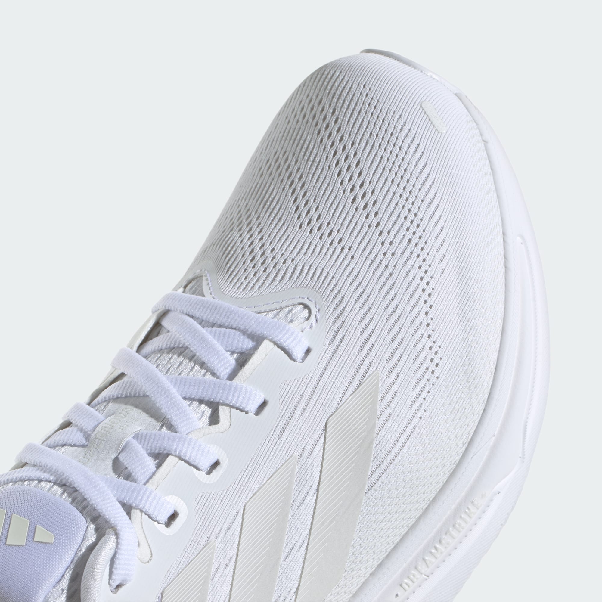 You got into running, and now there's a race on your calendar. Keep making progress in these adidas running shoes for daily runs. They ride on a Dreamstrike+ midsole, our lightweight super foam tuned for comfort. Support Rods help guide you from heel strike to toe off. Our new refined engineered sandwich mesh upper and premium heel construction is elegantly designed for optimized breathability for our most comfortable fit yet. Recognized by the American Podiatric Medical Association for promoting good foot health; this is Supernova Rise 2.