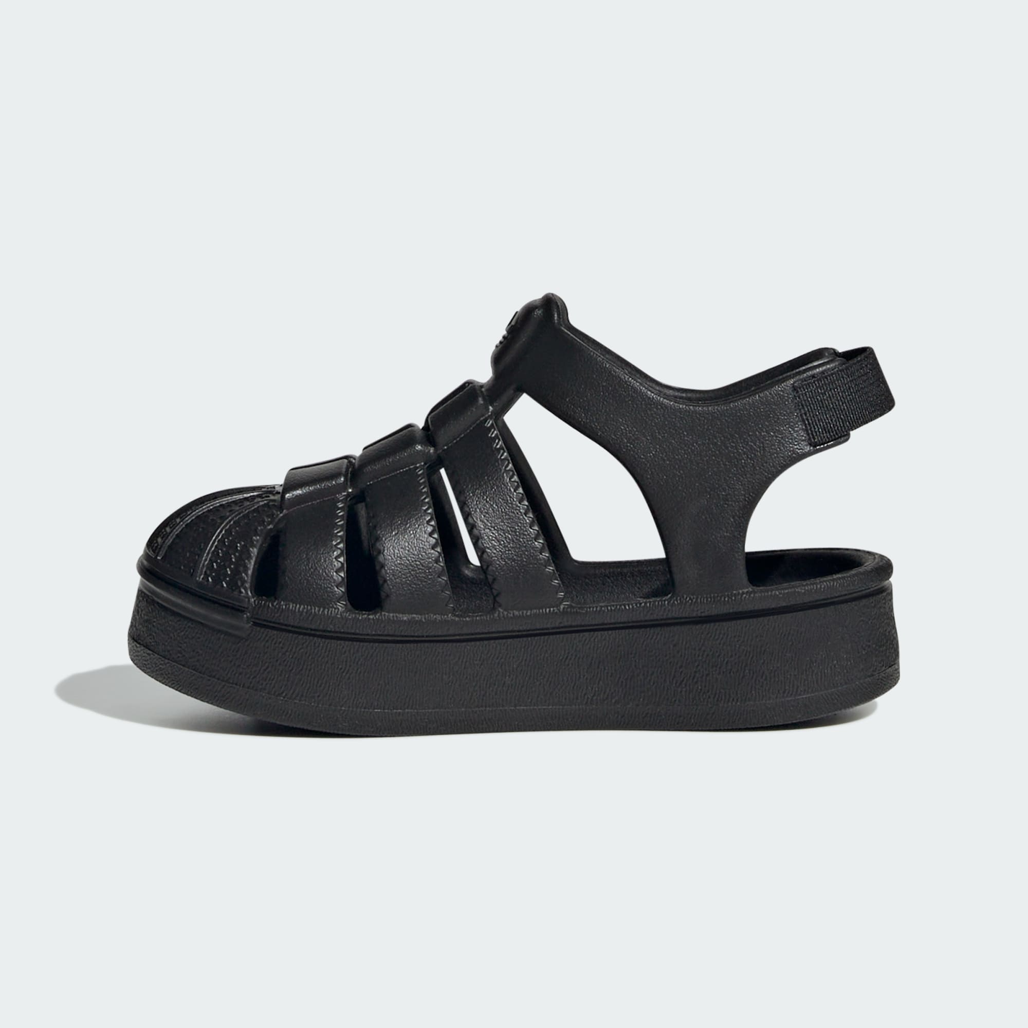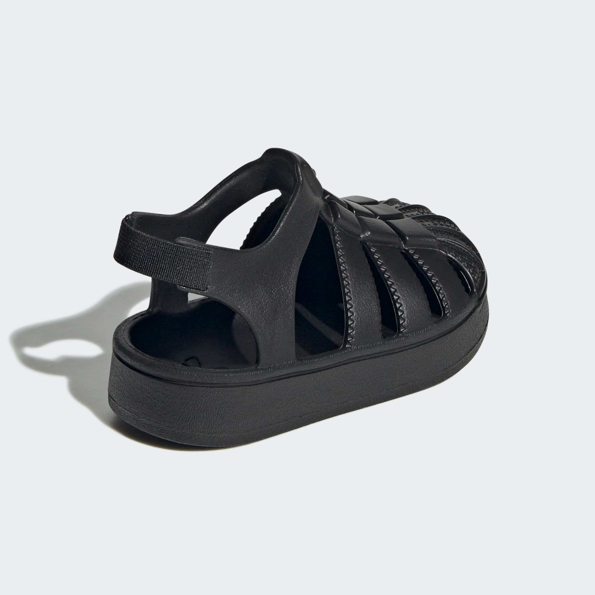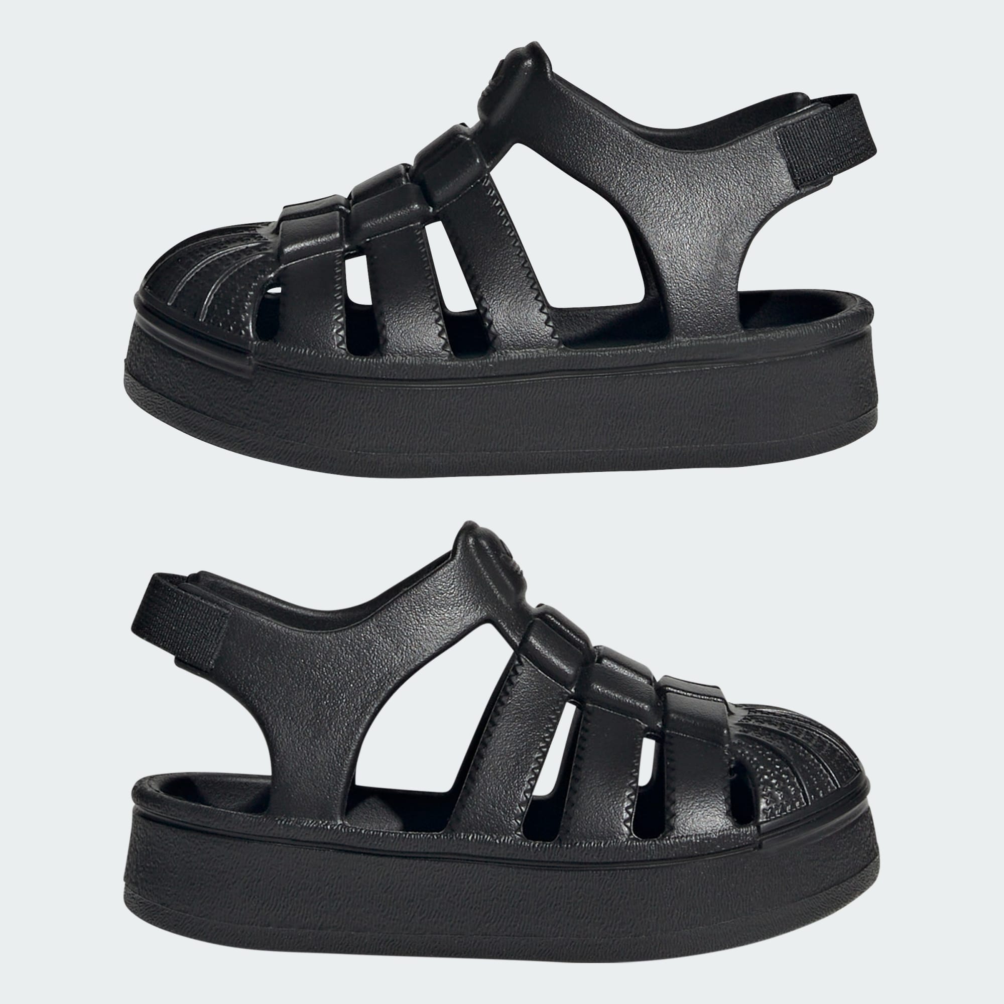 These toddlers' sandals are summer staples for the smallest feet. An elastic heel strap makes for easy on and off while the comfort footbed cushions as they explore. The iconic shell toe cap provides protection and shows the adidas Superstar shoes inspiration. Whether at the beach or in the backyard, little ones can make the most of sunny days in these sandals.