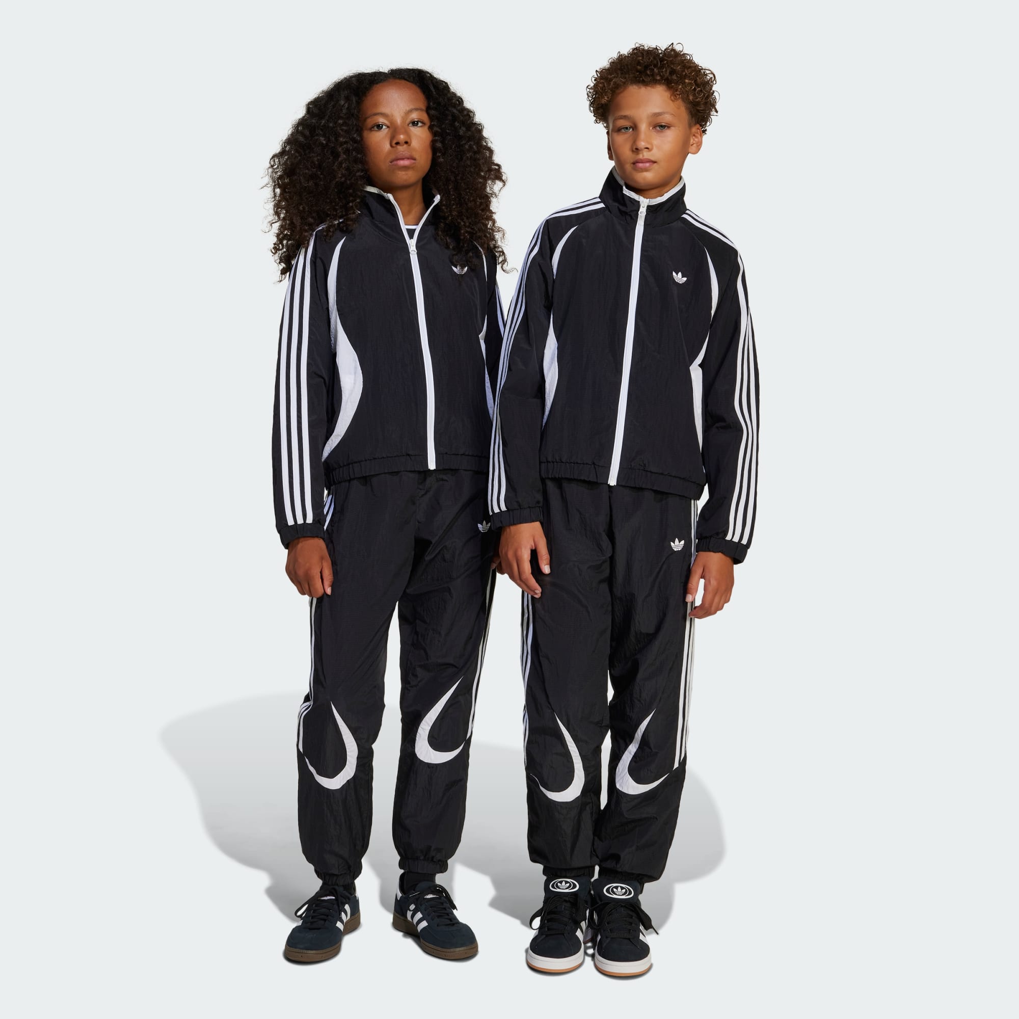 Inspired by the distinctive look of '00s soccer, these juniors' track pants from adidas are all about retro style. Cut from lightweight ripstop nylon with a slightly crinkled texture, they'll keep you comfortable whether you're kicking back or on the move. Teamgeist cut lines and a mix of matte and shiny materials bring the iconic Teamgeist design to life.