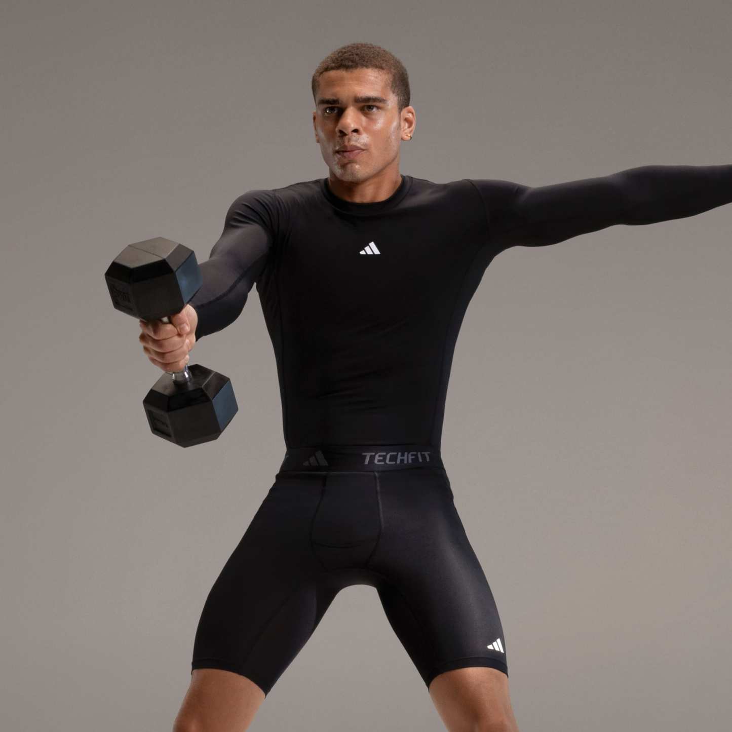 The new TECHFIT Compression fit is made of an AEROREADY single jersey and AEROREADY mesh for the back panel. This mesh ventilation allows for a breathable fit that leaves you with no distractions. With this product you will unlock your next level powerful moves聽with a聽compression fit that hugs your muscles.