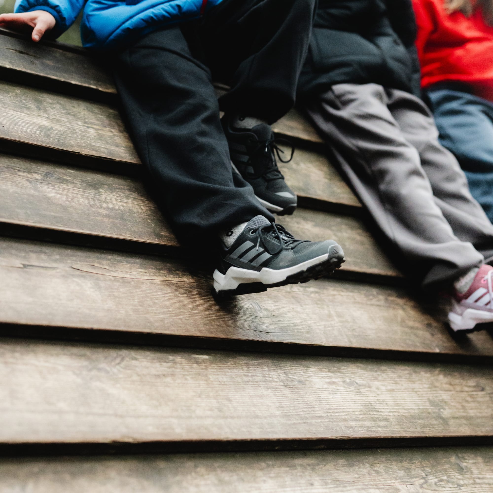 Kids are always up for adventure. Make sure they're ready to tackle the trails and explore the park with these adidas Terrex hiking shoes. Built to balance protection, comfort and grip, they are the versatile outdoor shoes kids can wear to explore near and far. A cushioned midsole keeps fast-moving feet feeling good all day, and the grippy Traxion outsole gives them confident footing as they scramble over loose rocks and dirt. The Adifit insole measuring tool ensures the right fit so they can stay outside longer and explore more. This product features at least 20% recycled materials. By reusing materials that have already been created, we help to reduce waste and our reliance on finite resources and reduce the footprint of the products we make.