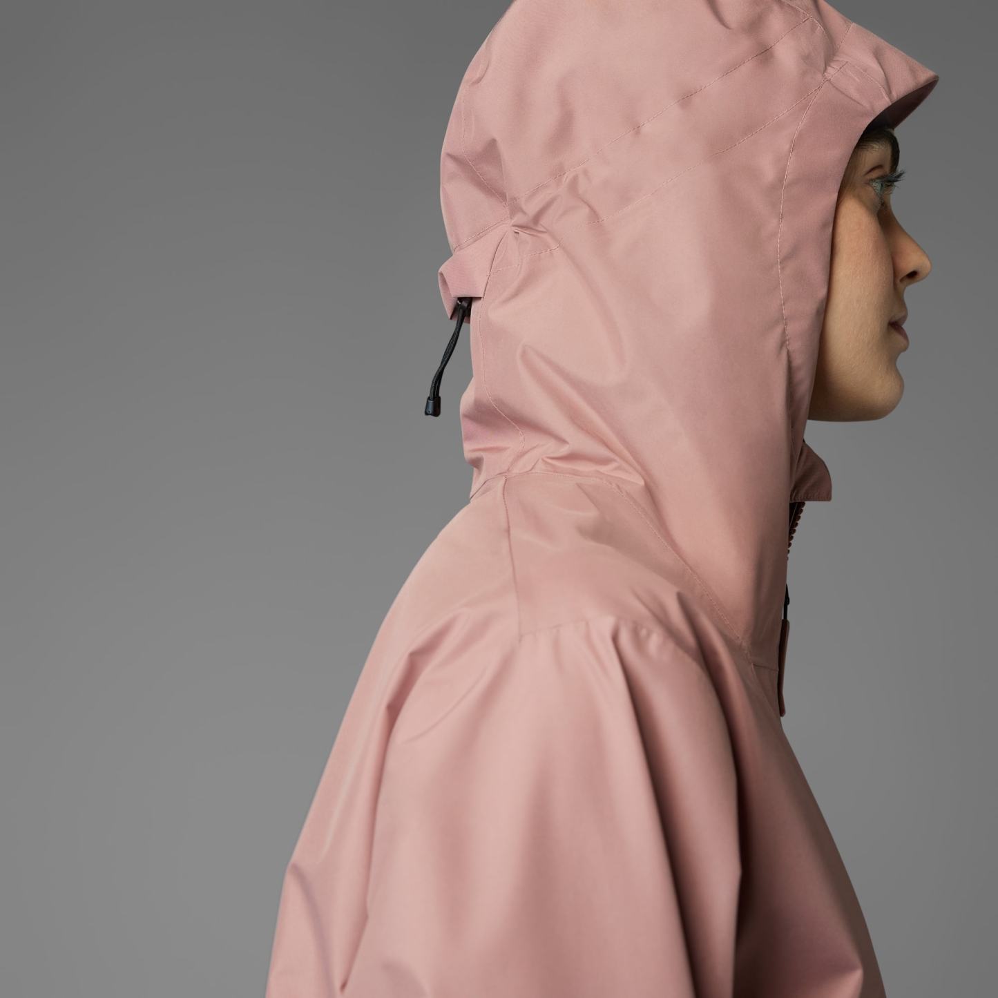 Hike. Explore. Travel. This adidas Terrex rain jacket offers waterproof breathable coverage that packs down small for easy stowing in a pack or bag. RAIN.RDY seals out water to keep you dry through showers and wet weather. The lightweight 2.5-layer design maintains breathability that lets your body regulate its temperature as you heat up while hiking. Layer it over a fleece or hoodie in cool weather or throw it on over a shirt when afternoon showers try to slow you down. When the sun shines, pack it into its built-in storage pocket and keep exploring.By choosing recycled, we are able to reuse materials that have already been created, which helps to reduce waste. Renewable materials choices will help us to remove our reliance on finite resources. Our products made with a blend of recycled and renewable materials feature at least 70% total of these materials.