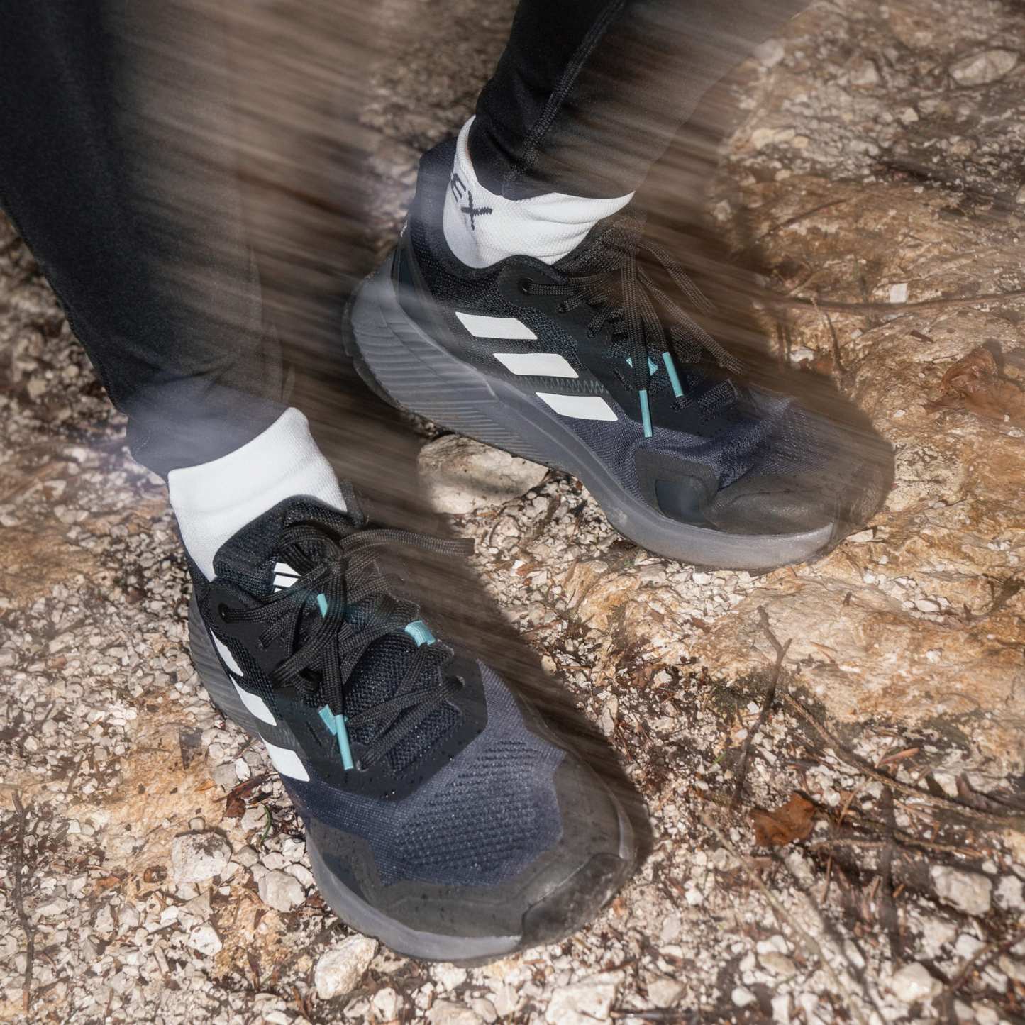Run from your front door to dirt trails and back again. Helping extend your adventure beyond the pavement, these adidas trail running shoes come packed with comfort. An EVA midsole provides lightweight cushioning no matter how many miles you run, and an engineered mesh upper offers breathability and support. The Traxion outsole gives you maximum grip on uneven terrain.Made with a series of recycled materials, this upper features at least 50% recycled content. This product represents just one of our solutions to help end plastic waste.