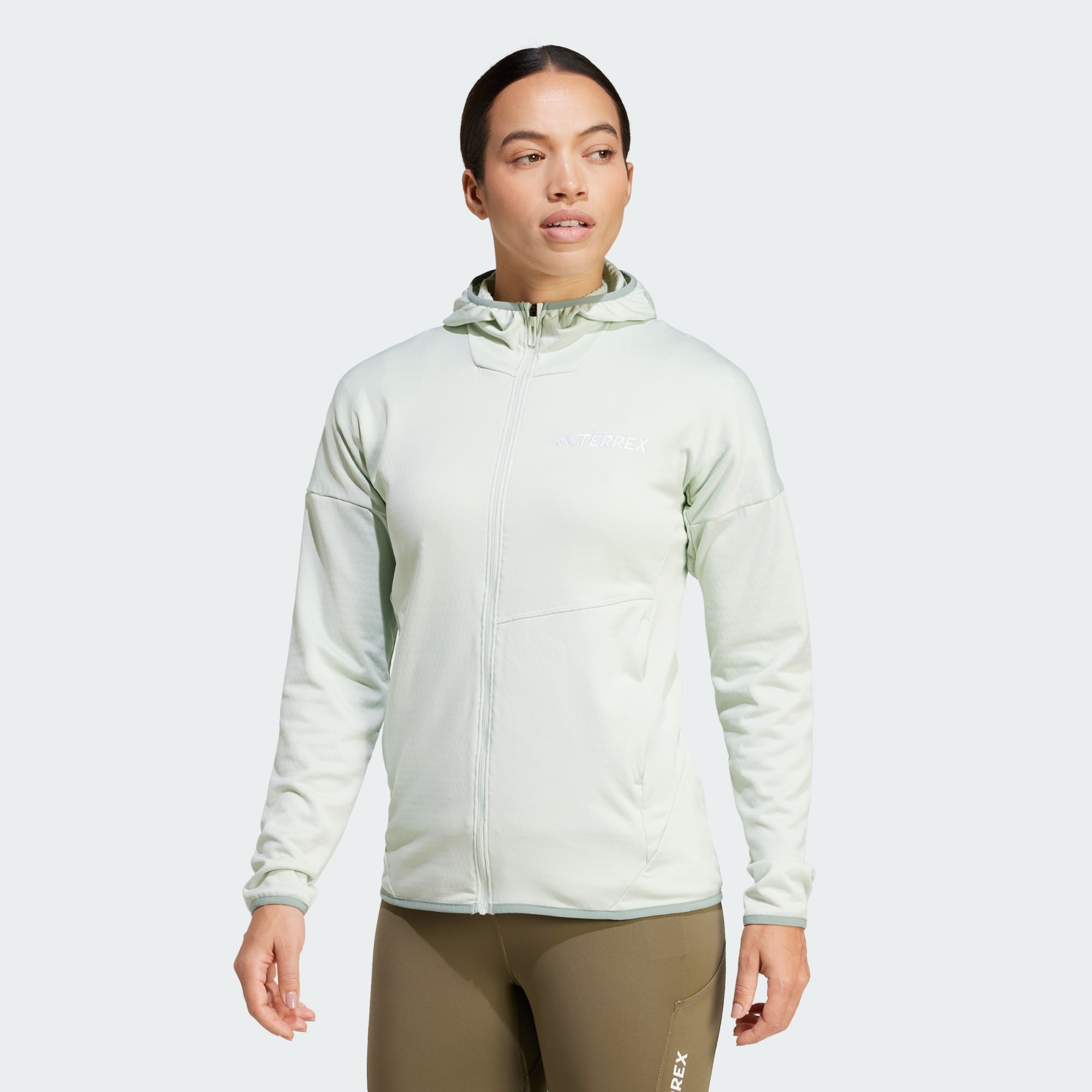 Pack right and be ready for the day. This adidas Terrex fleece is an all-purpose jacket for trail runs, hikes and ski tours. CLIMAWARM traps heat and releases sweat for a warm, dry and focused performance. It's a lightweight, versatile fleece made for active days in cool weather or under a shell for added warmth anytime. Technical flooce fabric uses a loop construction and a honeycomb structure for a soft feel and warmth without brushing. Side pockets add utility, and a full zip makes for easy transitions.CLIMAWARM has insulating materials that trap warmth for optimal body temperature. Stay dry inside with sweat-wicking fibers that keep skin dry and comfy. Dial up warmth retention with first layer comfort to boost heat.This product is made with 100% recycled materials. By reusing materials that have already been created, we help to reduce waste and our reliance on finite resources and reduce the footprint of the products we make.
