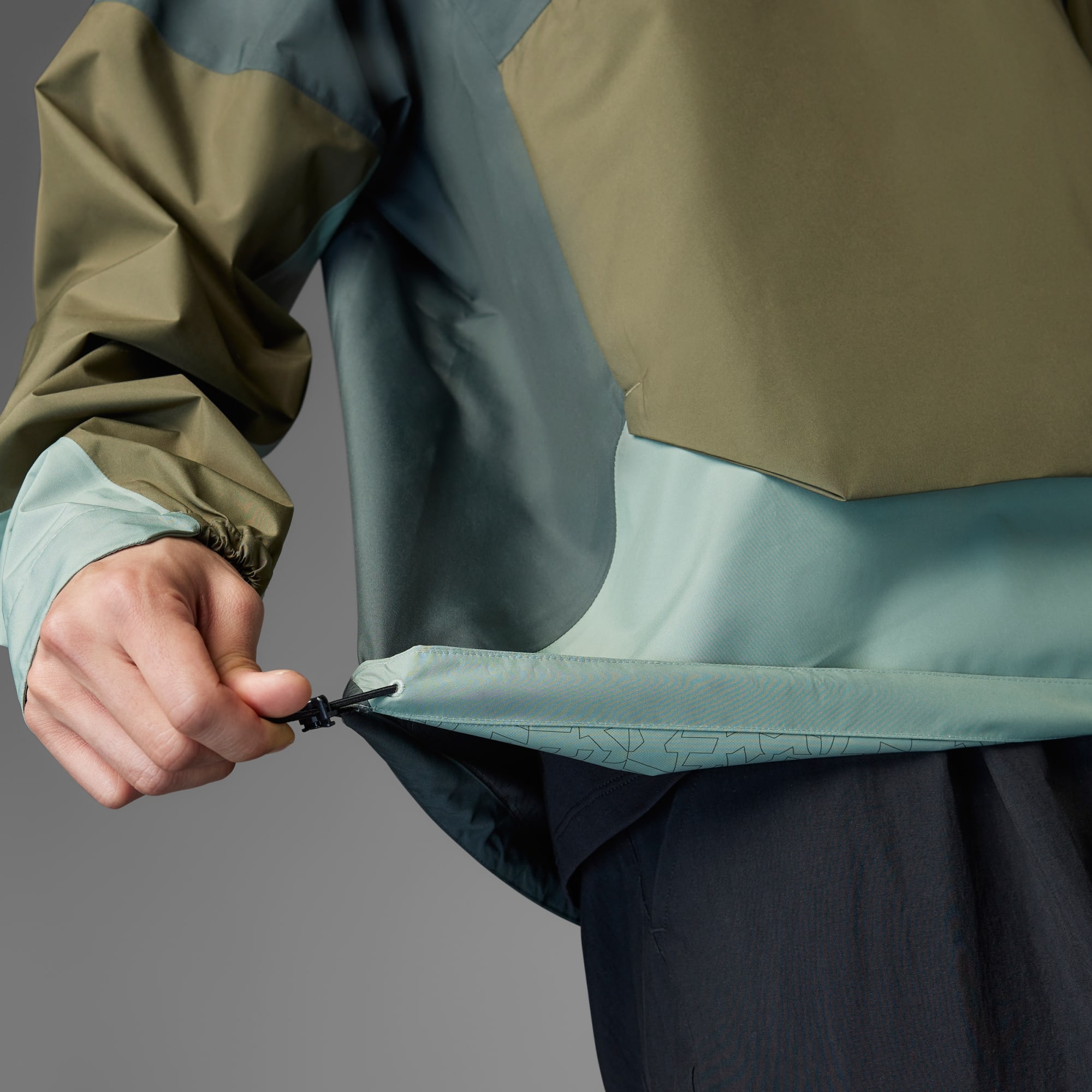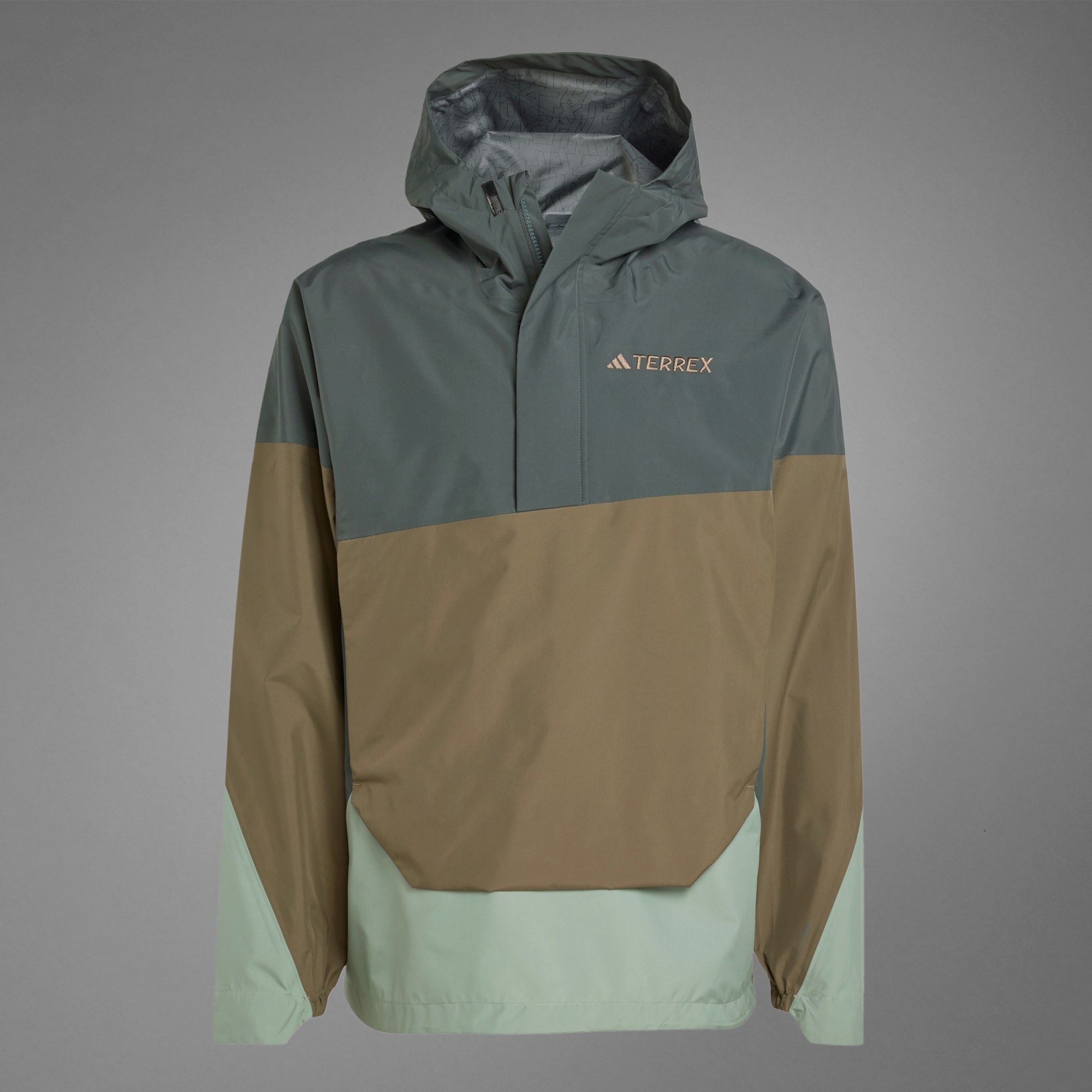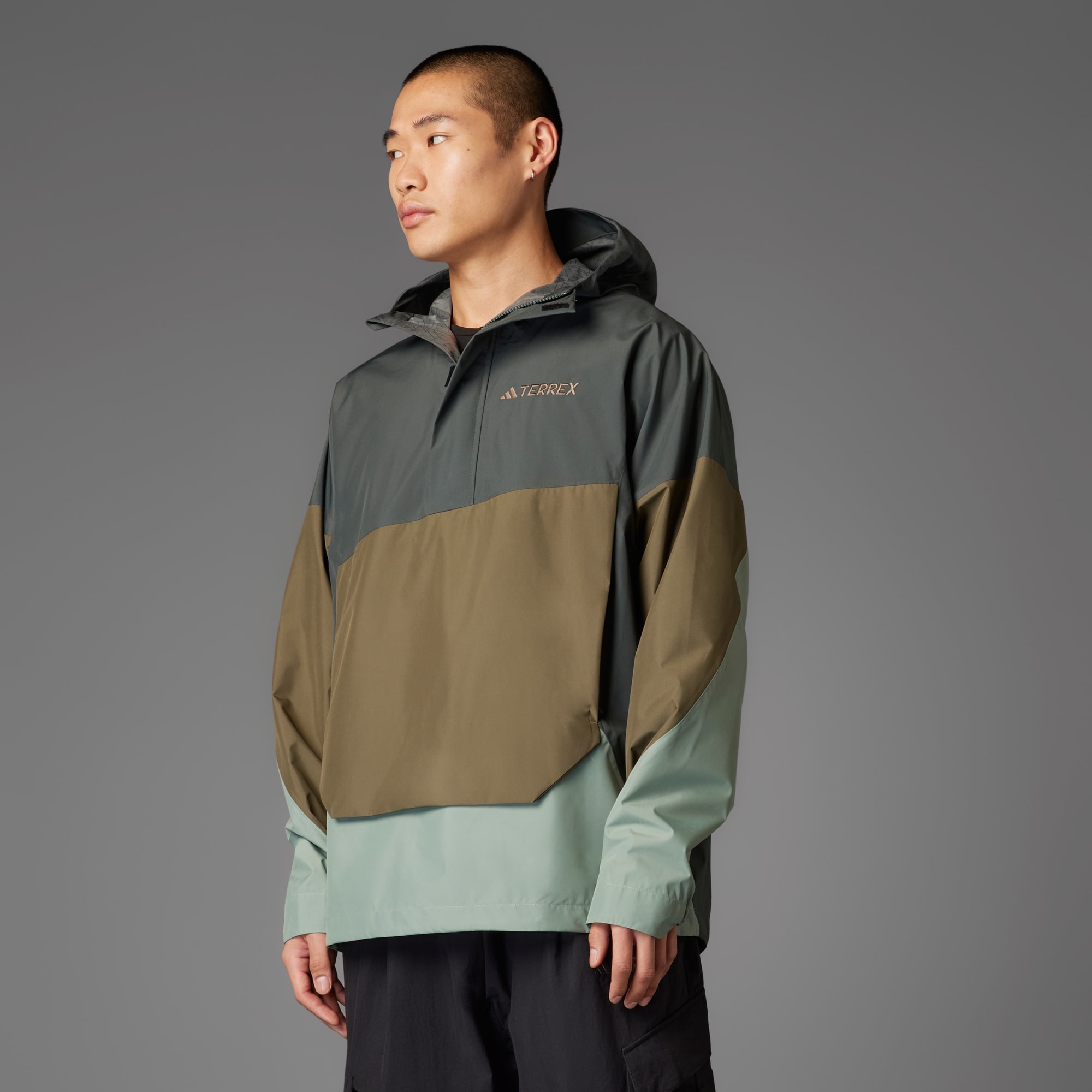 When the clouds build and rain arrives, this adidas Terrex anorak keeps you dry and comfortable. CLIMAPROOF locks out weather and helps sweat escape for dry, comfortable and unrestricted performance. The 2.5-layer construction is lighter than two or three-layer designs for a shell that stows easily in a day pack and still provides full coverage in the rain. A drawcord-adjustable hood with a visor adds coverage and zip pockets keep the small stuff secure. It's cut for a loose fit with plenty of room to move and layer.CLIMAPROOF locks out storms with waterproof materials and design to block harsh weather. Stay free from wind with wind-resistant and breathable material for extra comfort. Engineered features boost protection and breathability.This product is made with at least 70% recycled materials. By reusing materials that have already been created, we help to reduce waste and our reliance on finite resources and reduce the footprint of the products we make.