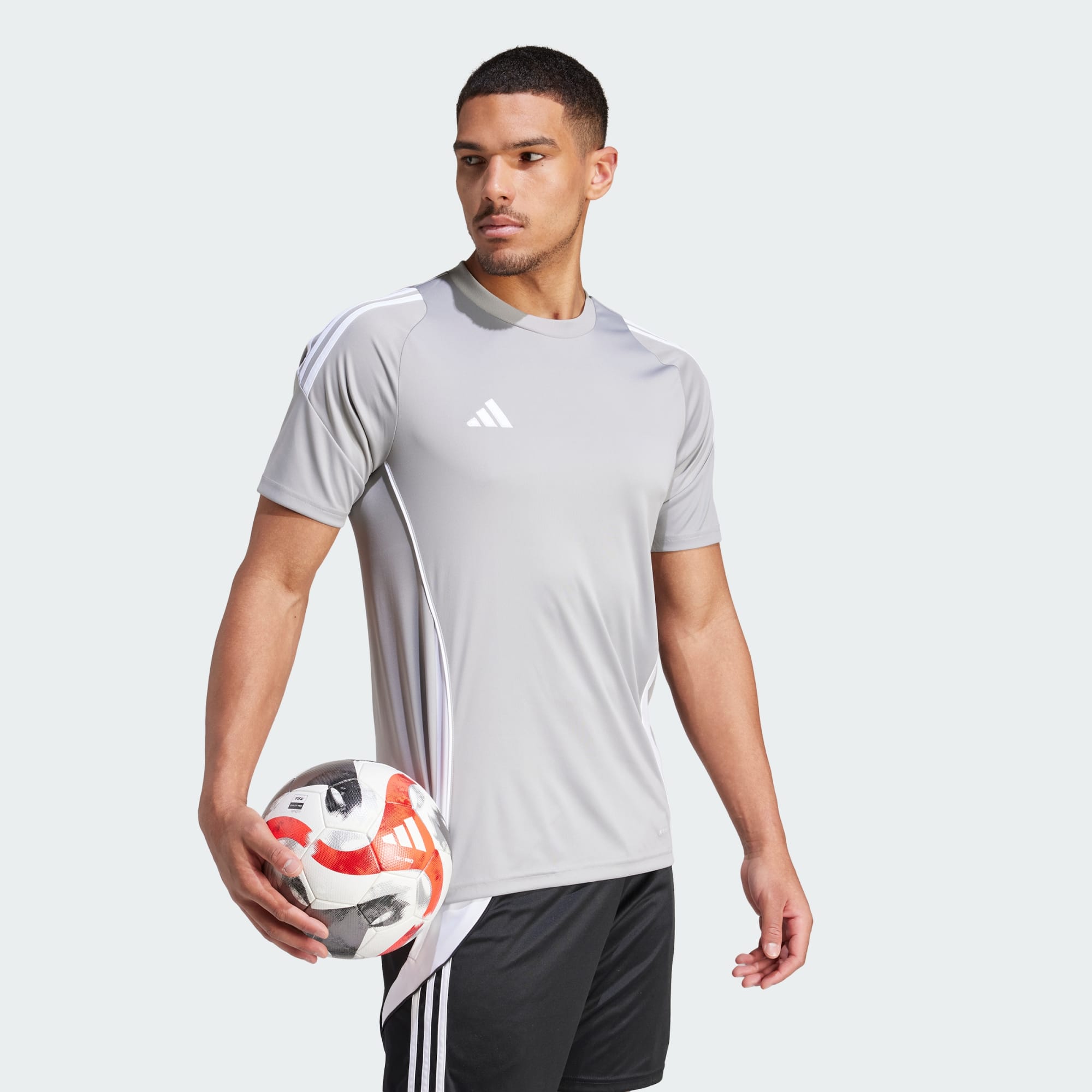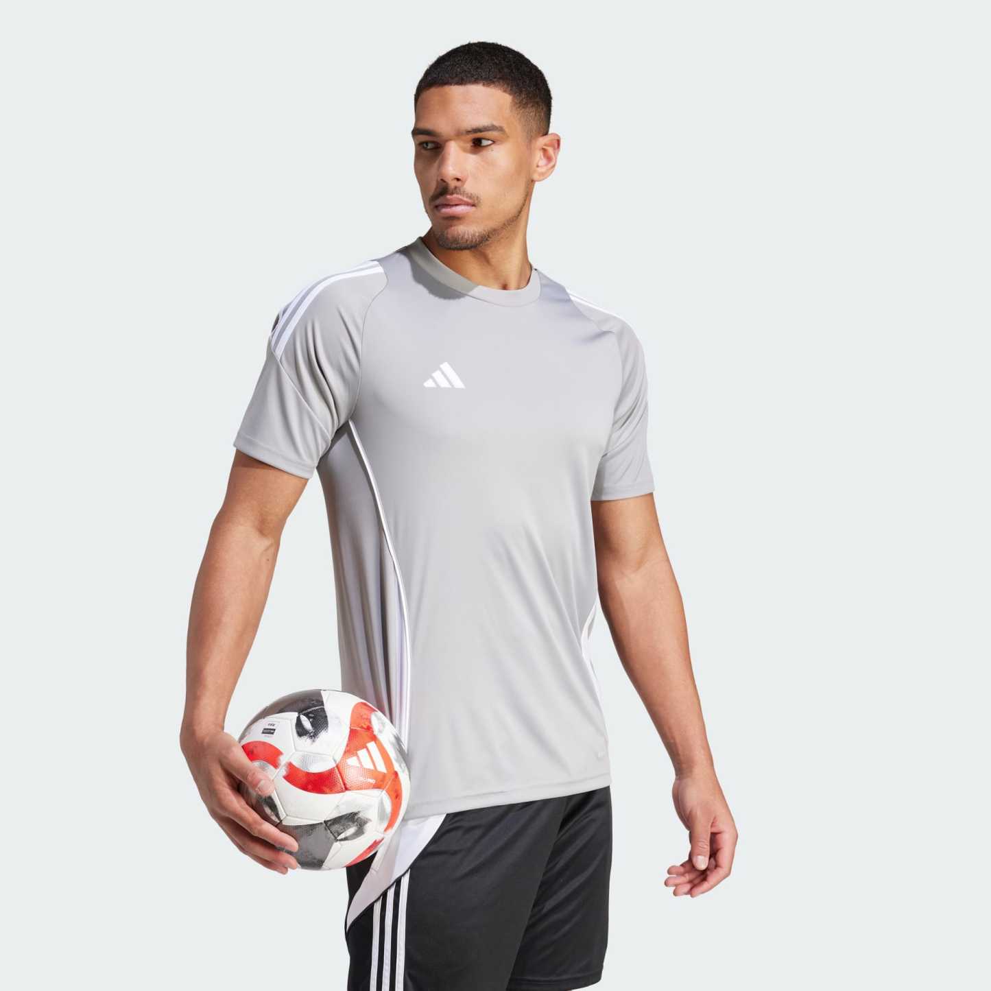 From pre-match warm-up to final whistle, this adidas Tiro 24 match jersey is built to support your game. Made for athletes in motion, it keeps you comfortable thanks to its moisture-wicking AEROREADY. Those floating 3-Stripes on the shoulders and that embroidered 3 Bar Logo add the perfect soccer finish to your look.This product is made with 100% recycled materials. By reusing materials that have already been created, we help to reduce waste and our reliance on finite resources and reduce the footprint of the products we make.