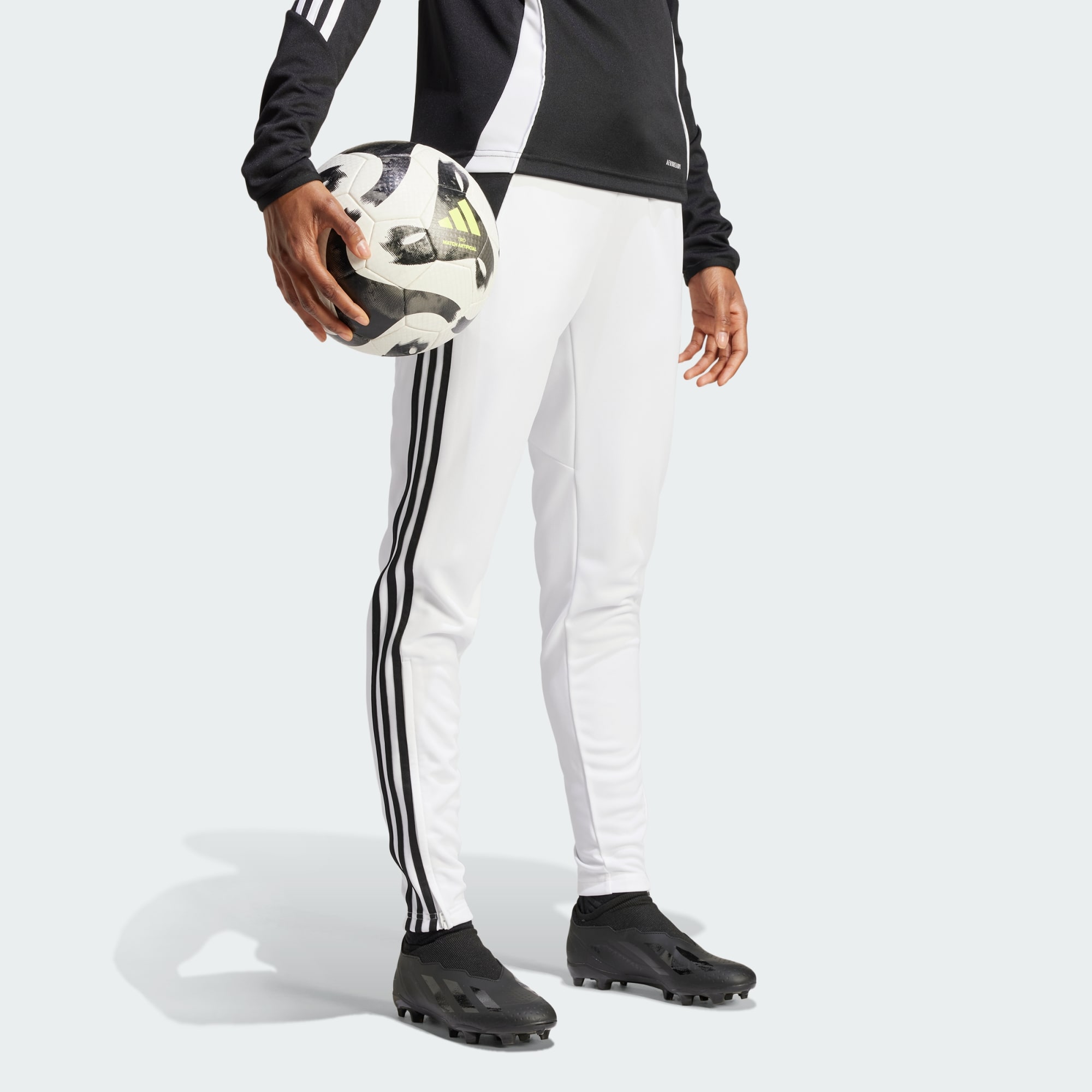 Take your training up a notch in these track pants from adidas. Built to keep you comfortable and focused during intensive drills, they're made from durable doubleknit fabric. Moisture-wicking AEROREADY keeps your legs dry for distraction-free soccer. Zip pockets secure essentials, leaving you to concentrate on improving your game.This product is made with 100% recycled materials. By reusing materials that have already been created, we help to reduce waste and our reliance on finite resources and reduce the footprint of the products we make.
