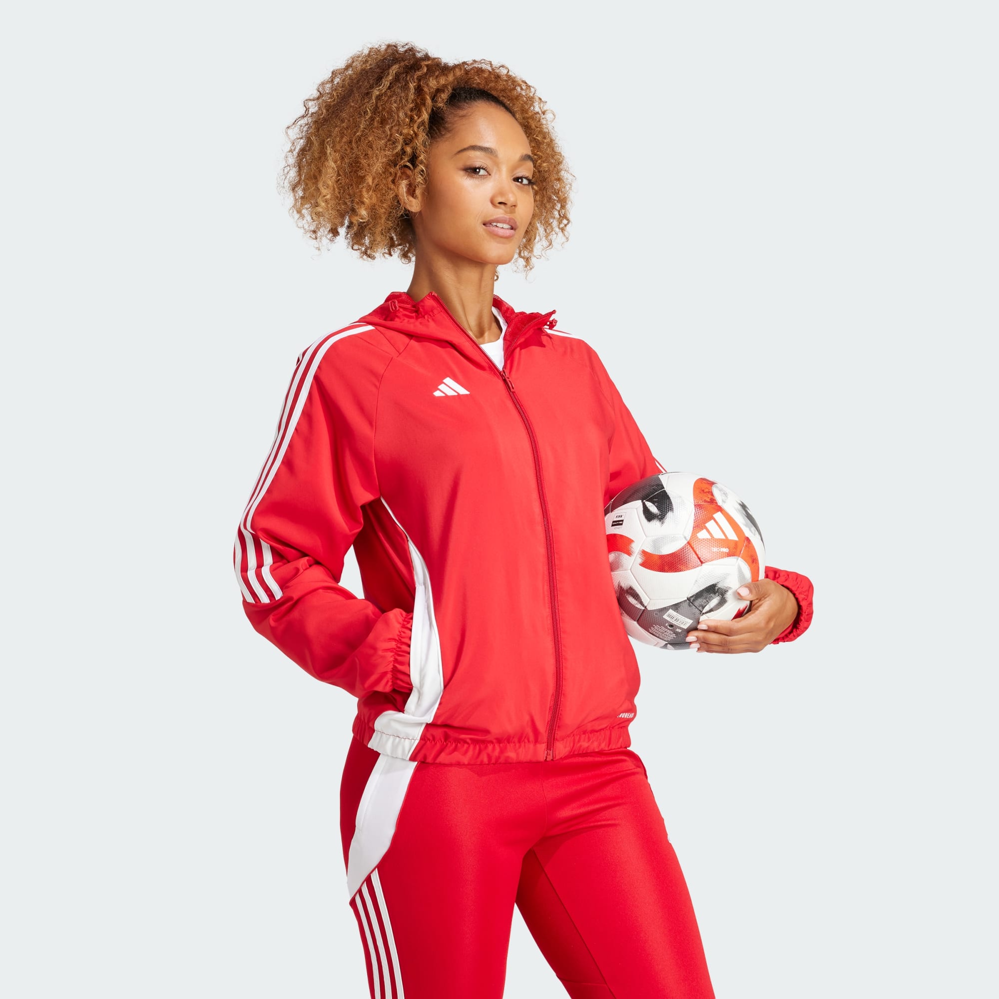 Don't let the elements throw training sessions off course. This adidas Tiro 24 windbreaker is engineered for committed soccer on blustery days. Lined with soft mesh, its durable woven shell keeps you comfortable. AEROREADY wicks moisture so you always feel dry while you're covered up.This product is made with at least 70% recycled materials. By reusing materials that have already been created, we help to reduce waste and our reliance on finite resources and reduce the footprint of the products we make.