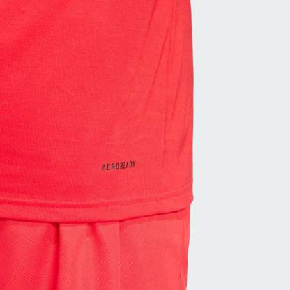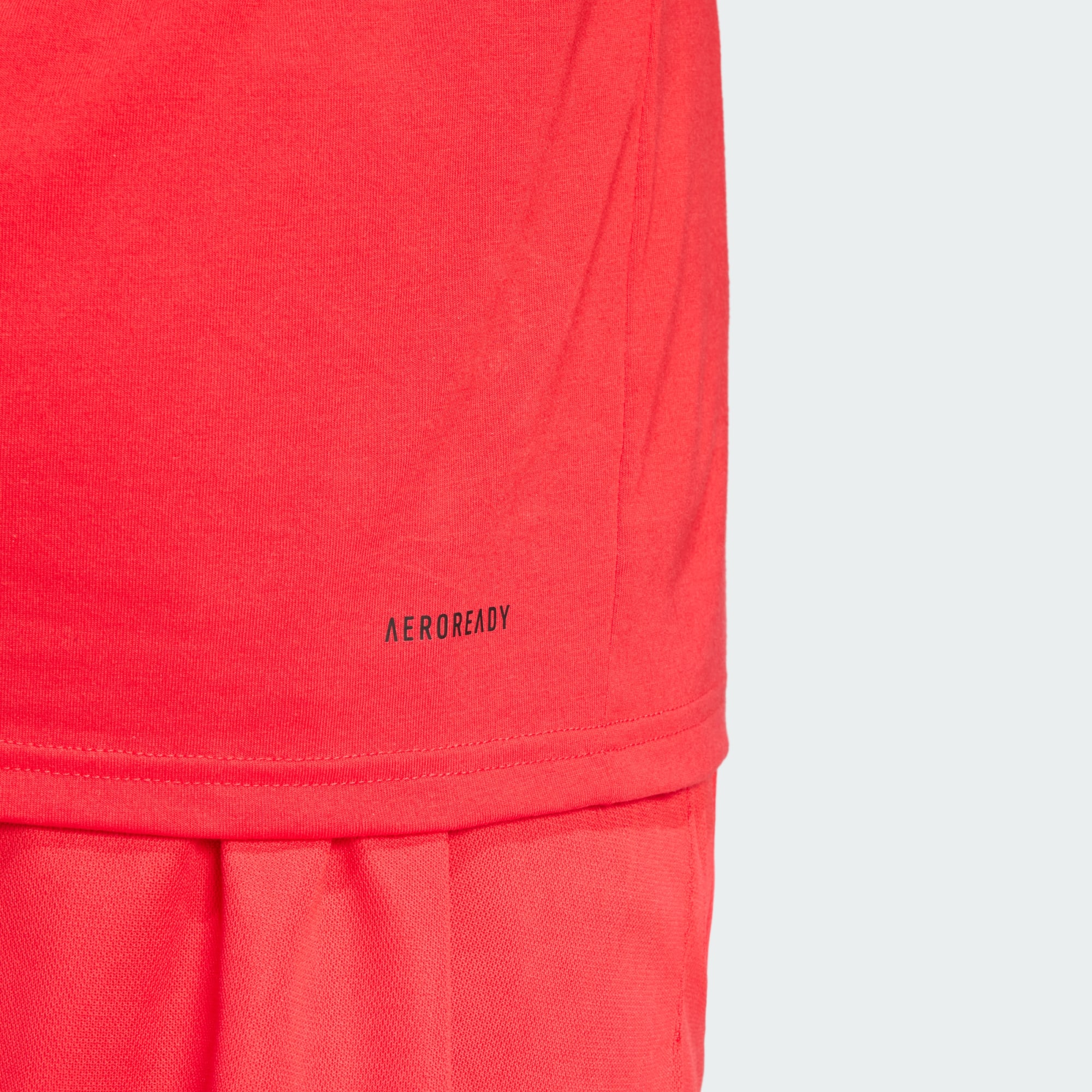 From push press to push-ups, move through a full range of motion in this adidas training t-shirt. It's cut to allow your arms to move freely overhead. Breathable fabric and moisture-absorbing AEROREADY keep you dry and comfortable as your heart rate rises.