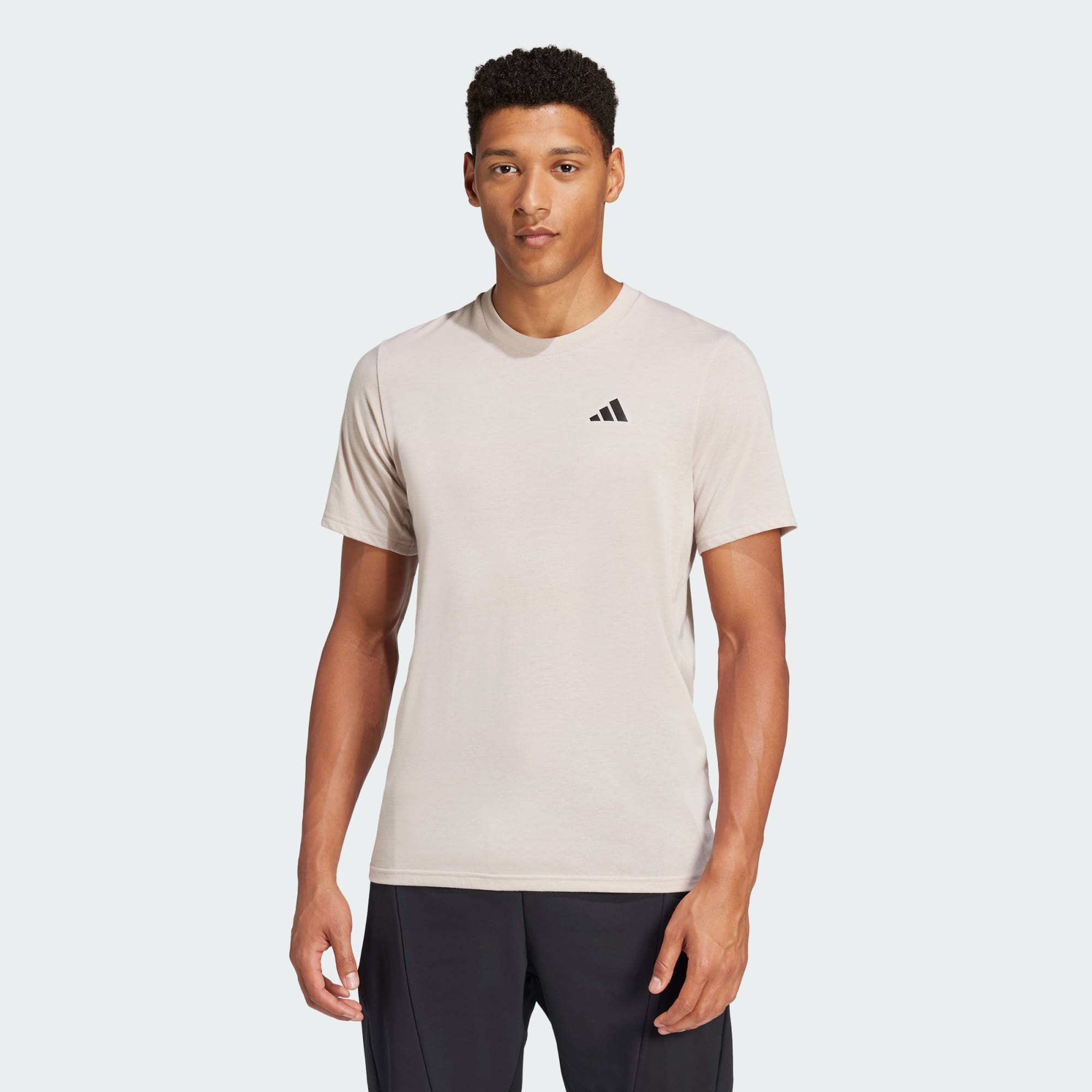 From push press to push-ups, move through a full range of motion in this adidas training t-shirt. It's cut to allow your arms to move freely overhead. Breathable fabric and moisture-absorbing AEROREADY keep you dry and comfortable as your heart rate rises.