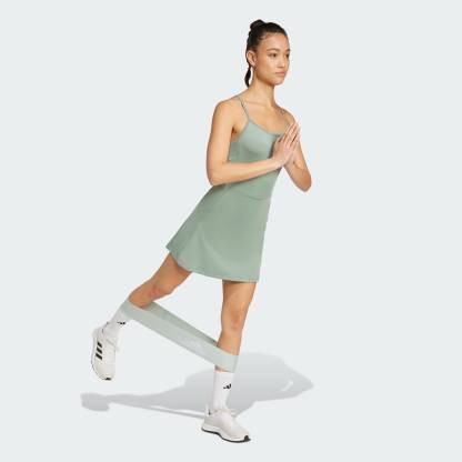 Cardio class to lifting session, this adidas dress is a chic option for any kind of training. The slim fit and stretchy fabric allow complete freedom of movement. Built-in shorts give you full coverage for deep squats and handstand holds. CLIMACOOL wicks and disperses sweat for cool, dry and distraction-free performance.CLIMACOOL helps you manage sweat with materials that wick and manage sweat quickly. Its fast-dry fibers give you a fresh-skin feel.This product is made with at least 70% recycled materials. By reusing materials that have already been created, we help to reduce waste and our reliance on finite resources and reduce the footprint of the products we make.