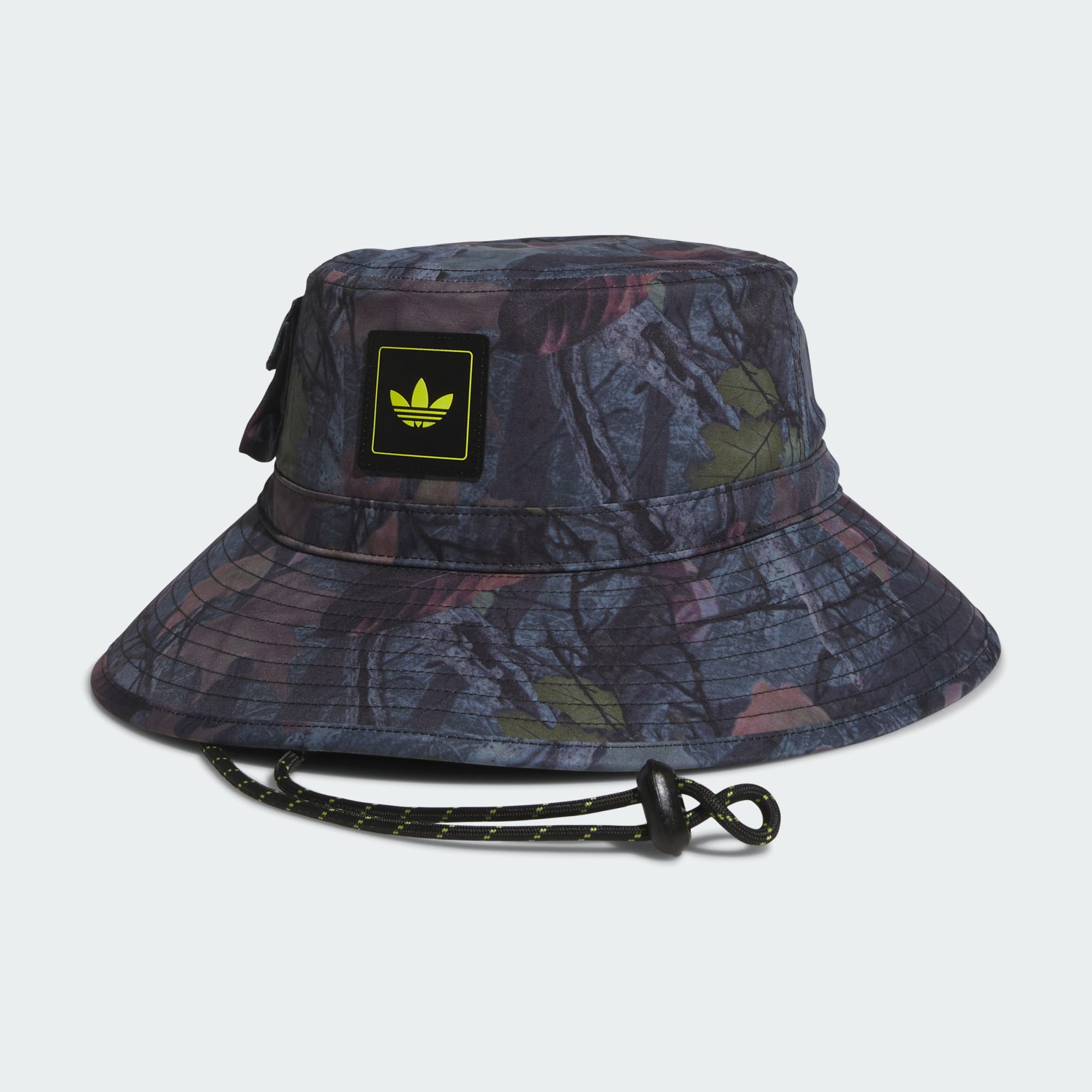 Whether exploring the city or out on one of nature's many wild getaways, this adidas camo boonie keeps you made in the shade. This version of the classic headwear has an extended brim and a little pocket on the side to stash something small. The chin strap adjusts with a sliding toggle.