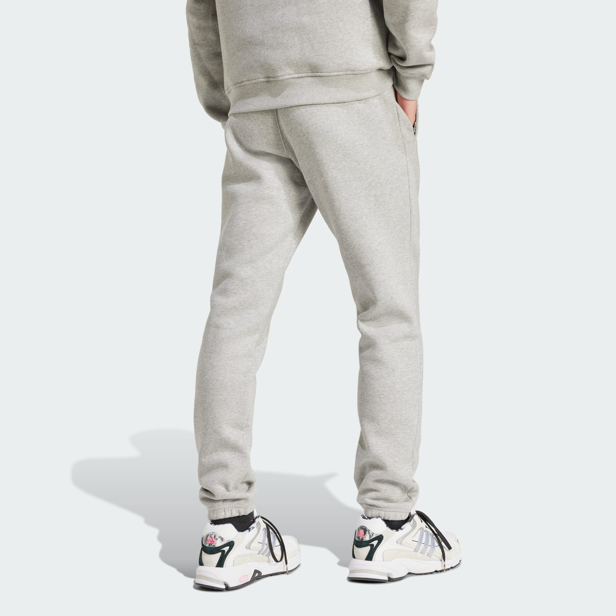 Built for everyday wear, these adidas pants slip on as easily as your favorite shoes. The slim profile skims your shape while soft fleece helps keep you cozy. Signature details like ribbed cuffs and a Trefoil logo stitched on one leg elevate the casual vibe.