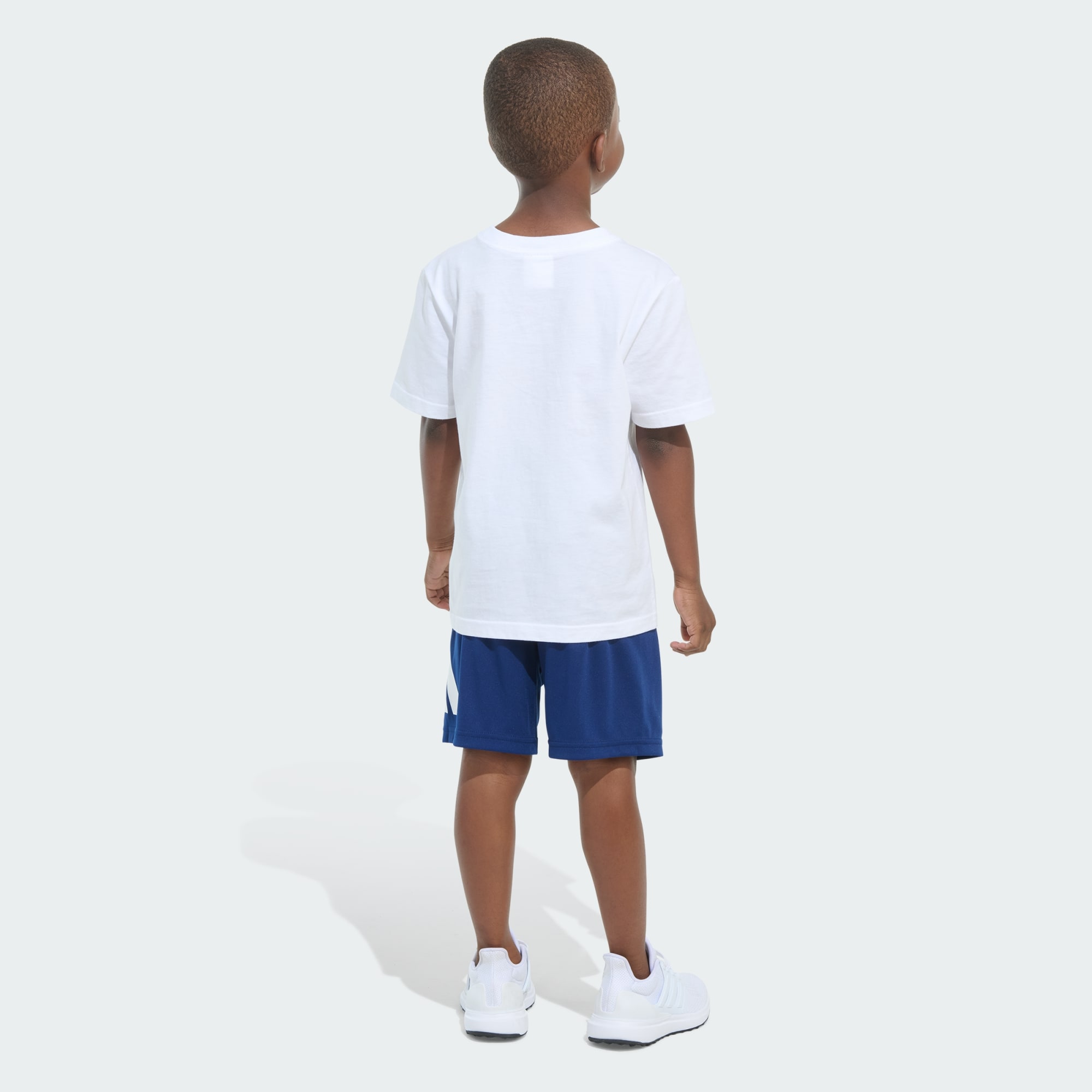Perfect for little athletes in the making, this two-piece adidas set for kids combines fun, sporty style with easy-wearing comfort. The outfit includes a graphic tee and shorts with an elastic waistband. Both pieces are made from soft, easy-to-clean fabric.