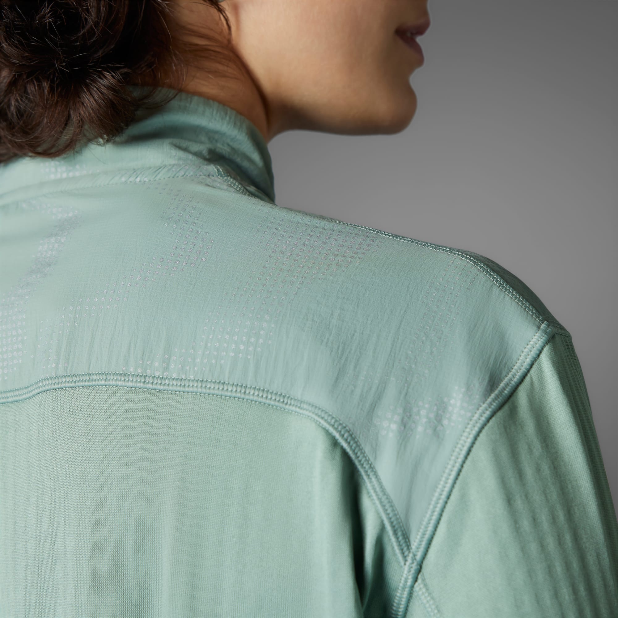 A reflective half-zip running top made in part with recycled materials.