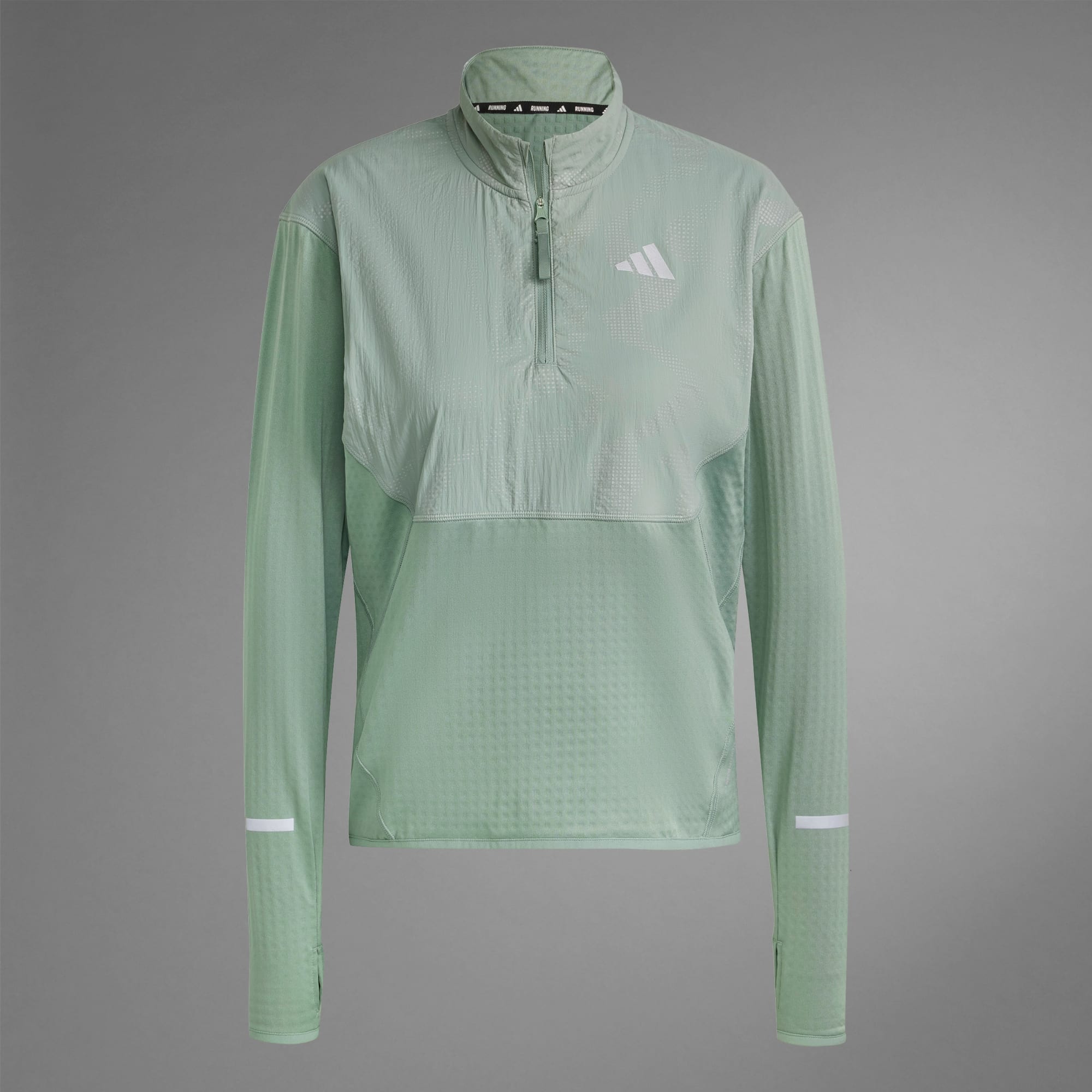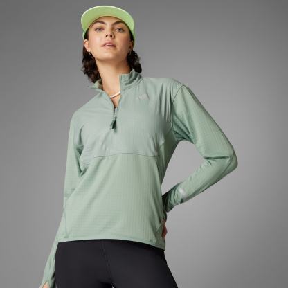 When the sun is low but you want to run anyway, pull on this adidas running half-zip top and get out there. Reflective details shine in dim light, making it the perfect partner for those dawn and dusk training runs. CLIMAWARM traps heat and releases sweat for a warm, dry and focused performance. This product is made with at least 70% recycled materials. By reusing materials that have already been created, we help to reduce waste and our reliance on finite resources and reduce the footprint of the products we make.