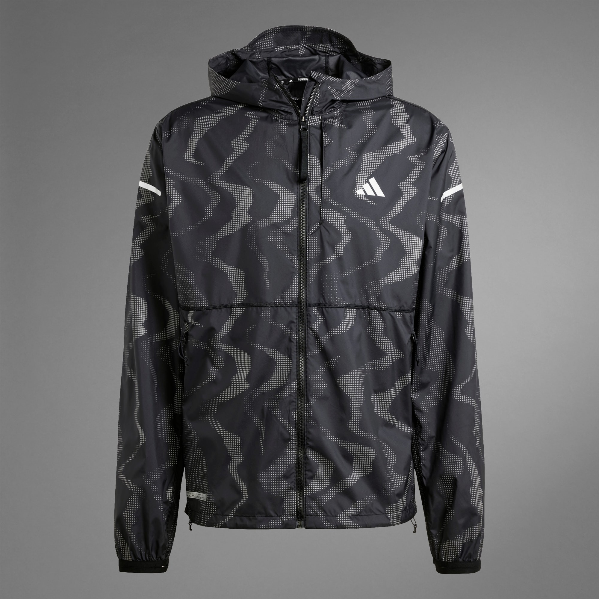 Take on windy runs with confidence. This adidas running jacket powers you through cool, blustery weather in comfort thanks to WIND.RDY technology. The adjustable hood and hem let you customize the fit, and elastic cuffs seal out the chill. Stash essentials in the zip pockets for easy access on the go. This product is made with 100% recycled materials. By reusing materials that have already been created, we help to reduce waste and our reliance on finite resources and reduce the footprint of the products we make.