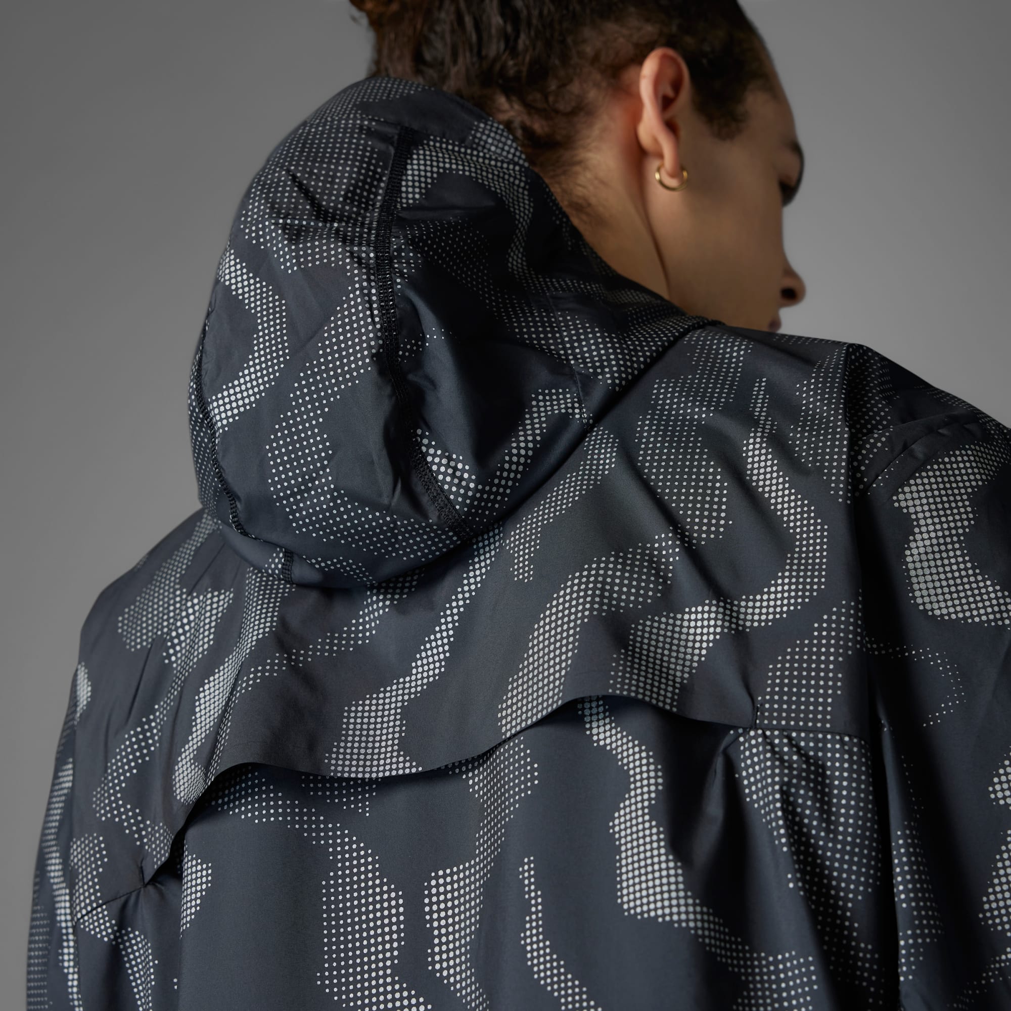 A running jacket for windy conditions, made with recycled materials.
