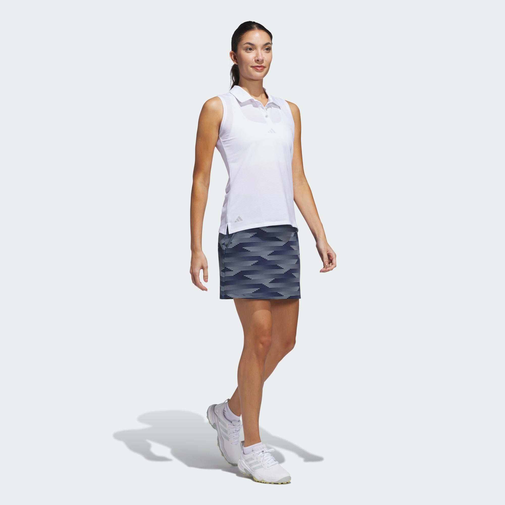 Enjoy all-day comfort and effortless movement in this adidas golf skort. A wide stretch waist supports you through 18 holes and beyond, and the sporty style wears well on and off the course.
