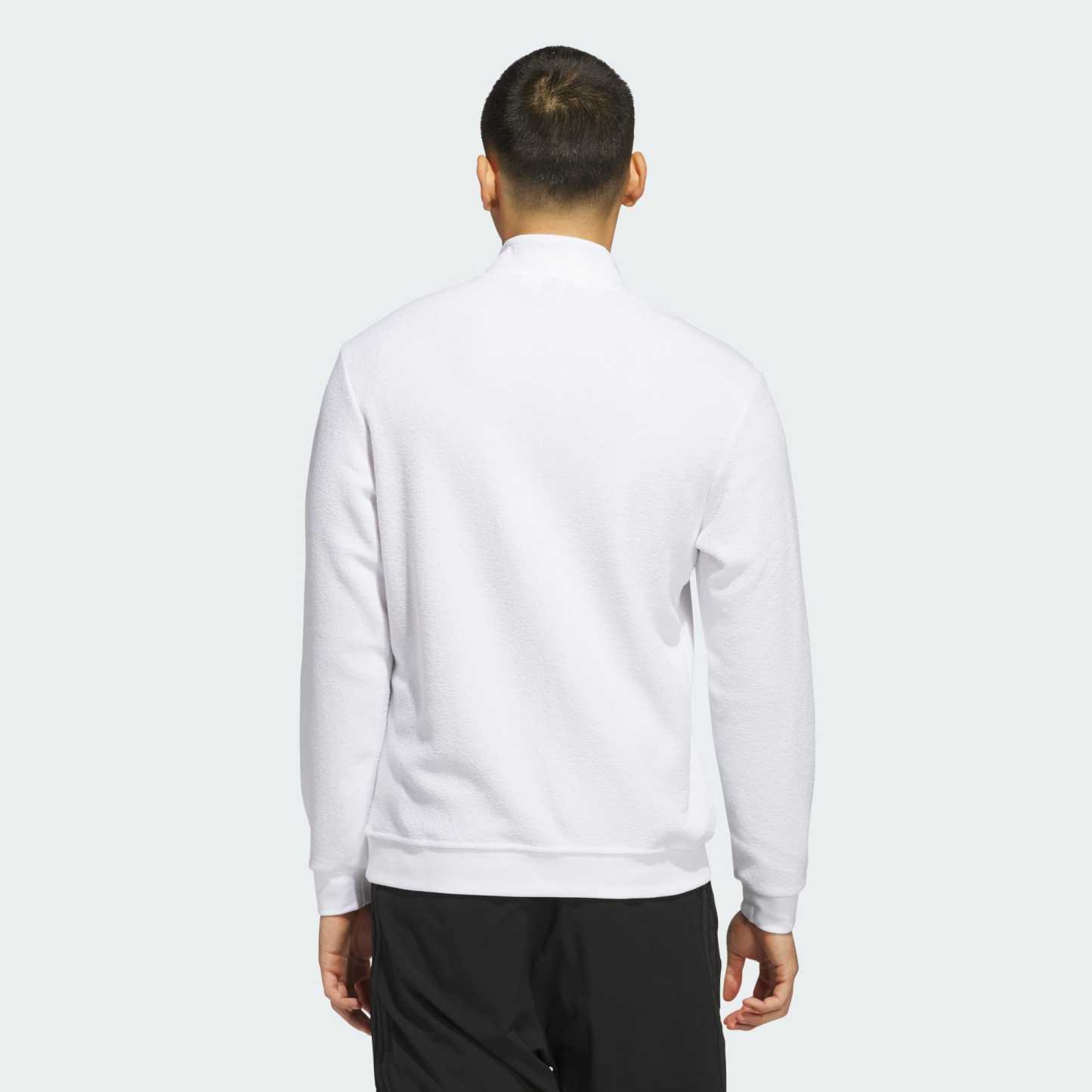 Layer up for cool-weather rounds in this golf pullover from adidas. Soft-touch fabric feels good from first tee to final putt and beyond. The terry cloth construction offers a laid-back look that translates to any course.