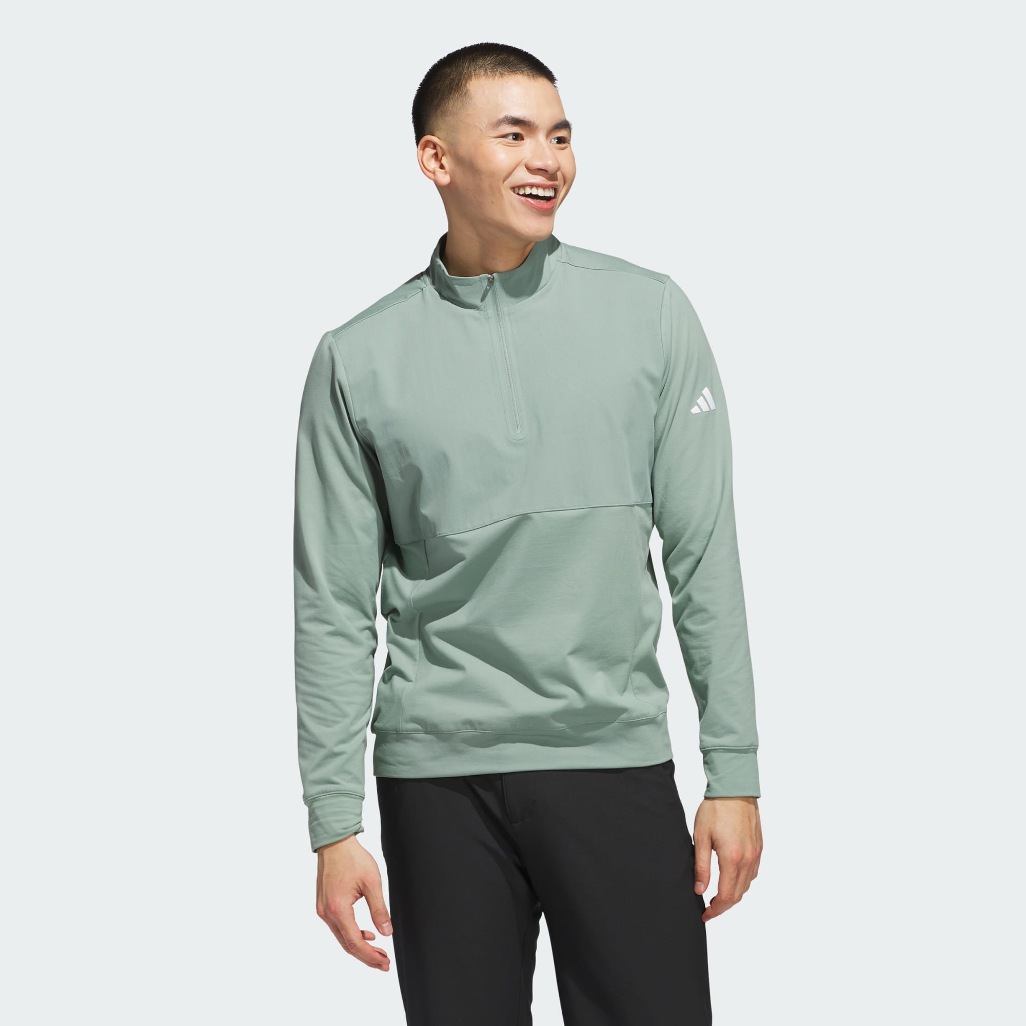 Layer up for cool-weather play. This adidas golf pullover adds warmth during chilly rounds to help you maintain focus. Plenty of stretch ensures you can swing and bend without restriction, and a water-repellent finish lets you play through occasional showers.