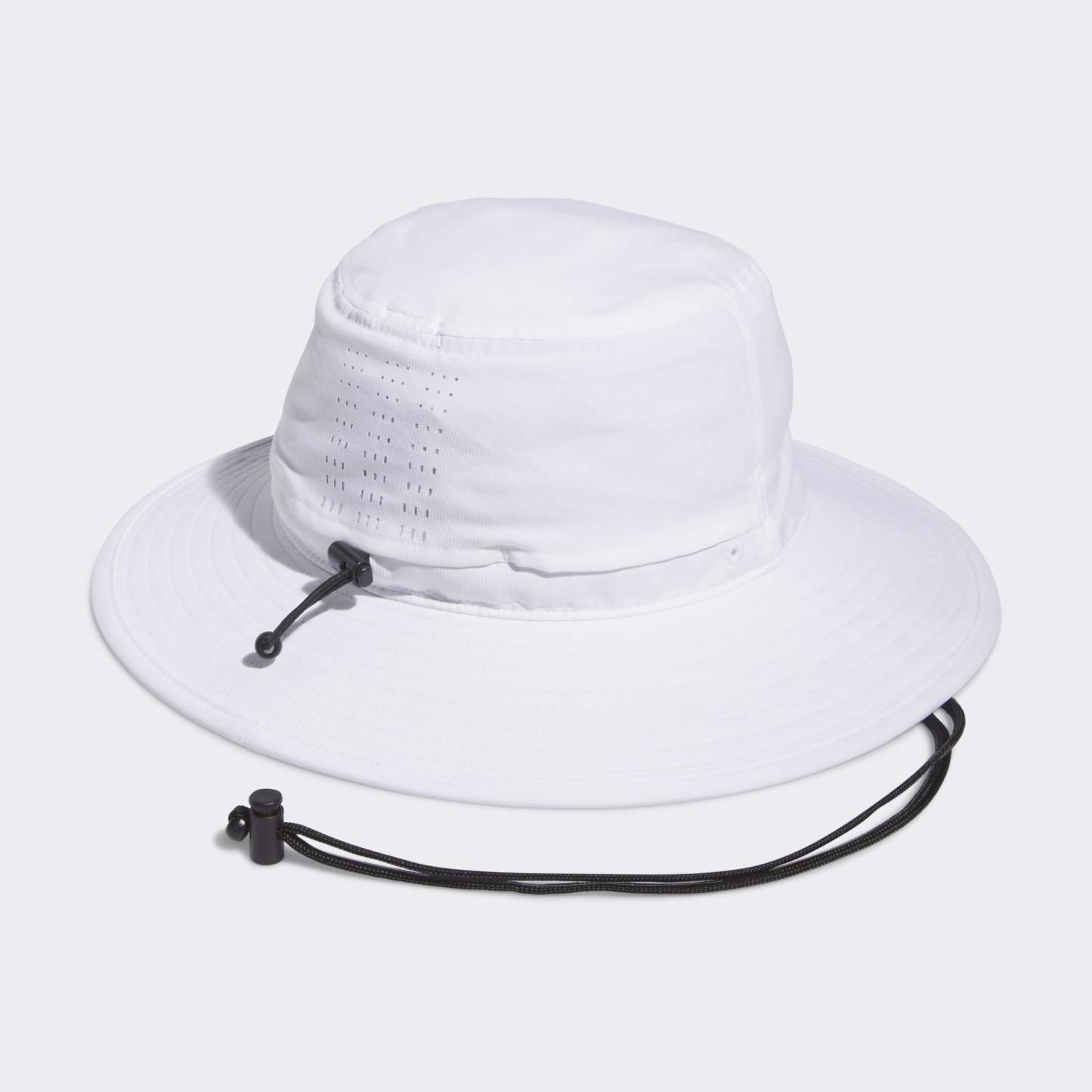 Bring some shade to open fairways with this adidas golf hat. The wide brim keeps the sun's rays off your face and neck while AEROREADY absorbs moisture to keep you dry. Ventilated 3-Stripes at the back help you stay cool. Adjust the drawcord when the breeze picks up and play through.